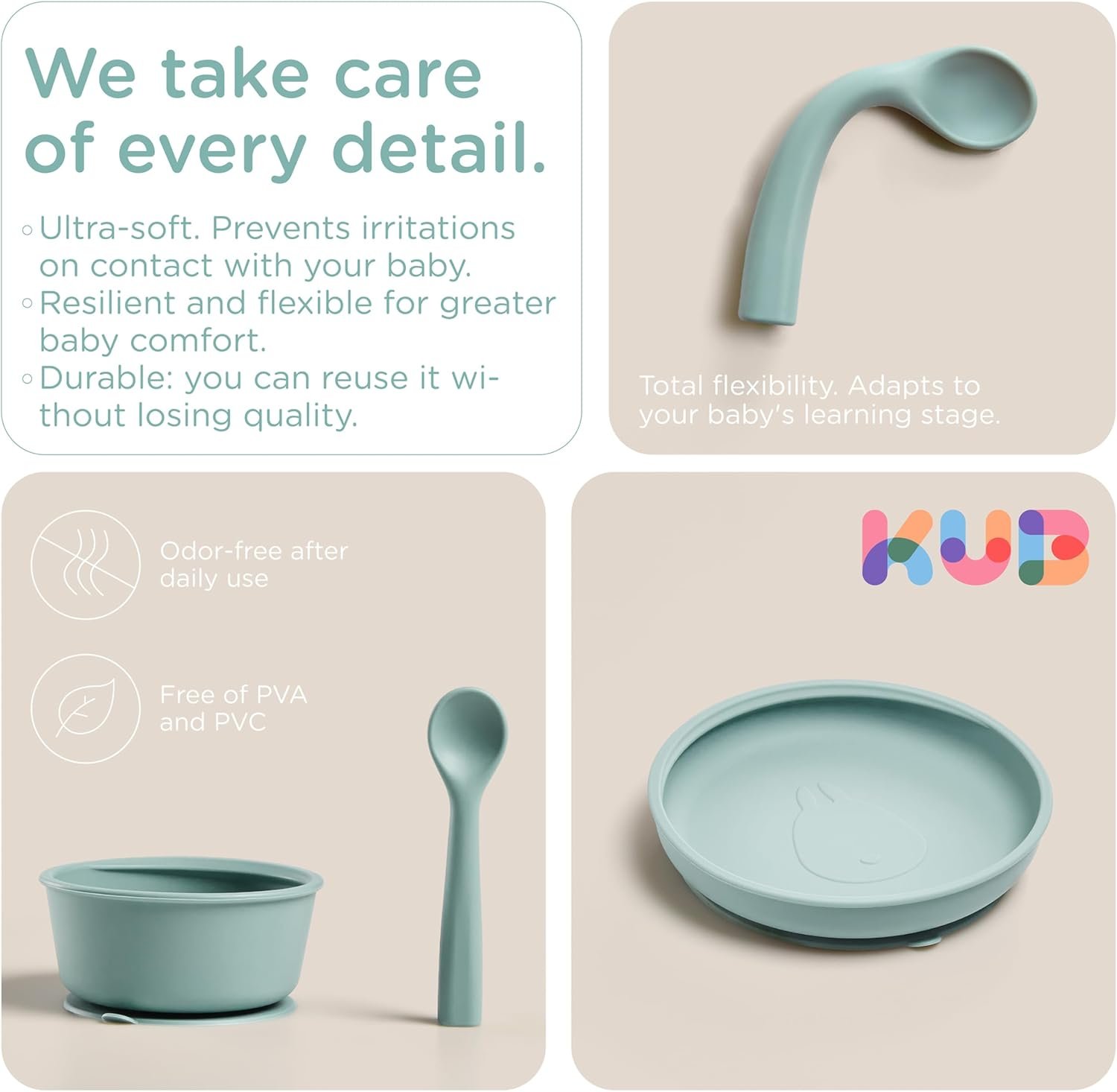 【100% safe food grade silicone】- Our silicone feeding set ensures your baby’s safety by being completely free from BPA, PVC. Soft and smooth, the design eliminates sharp edges to prevent any potential bumps or scratches.