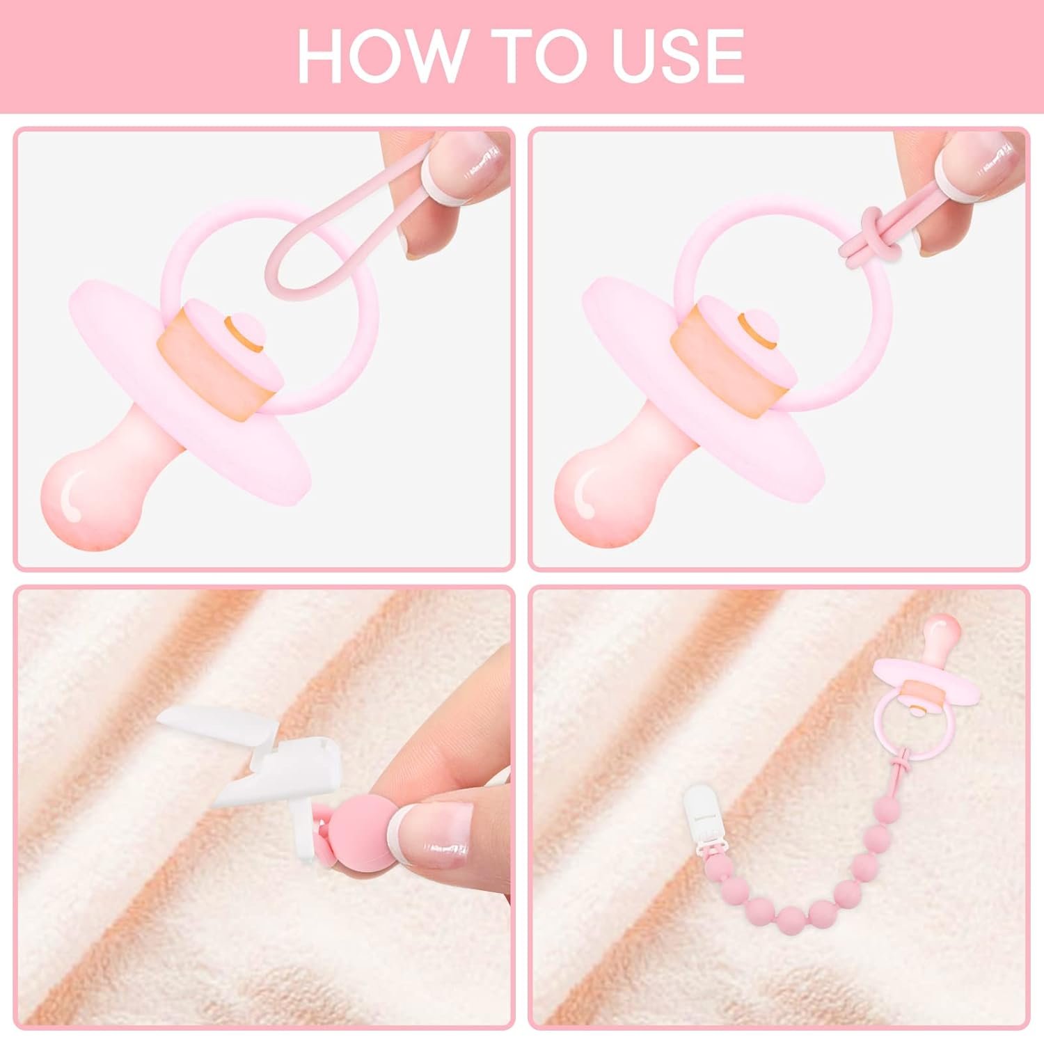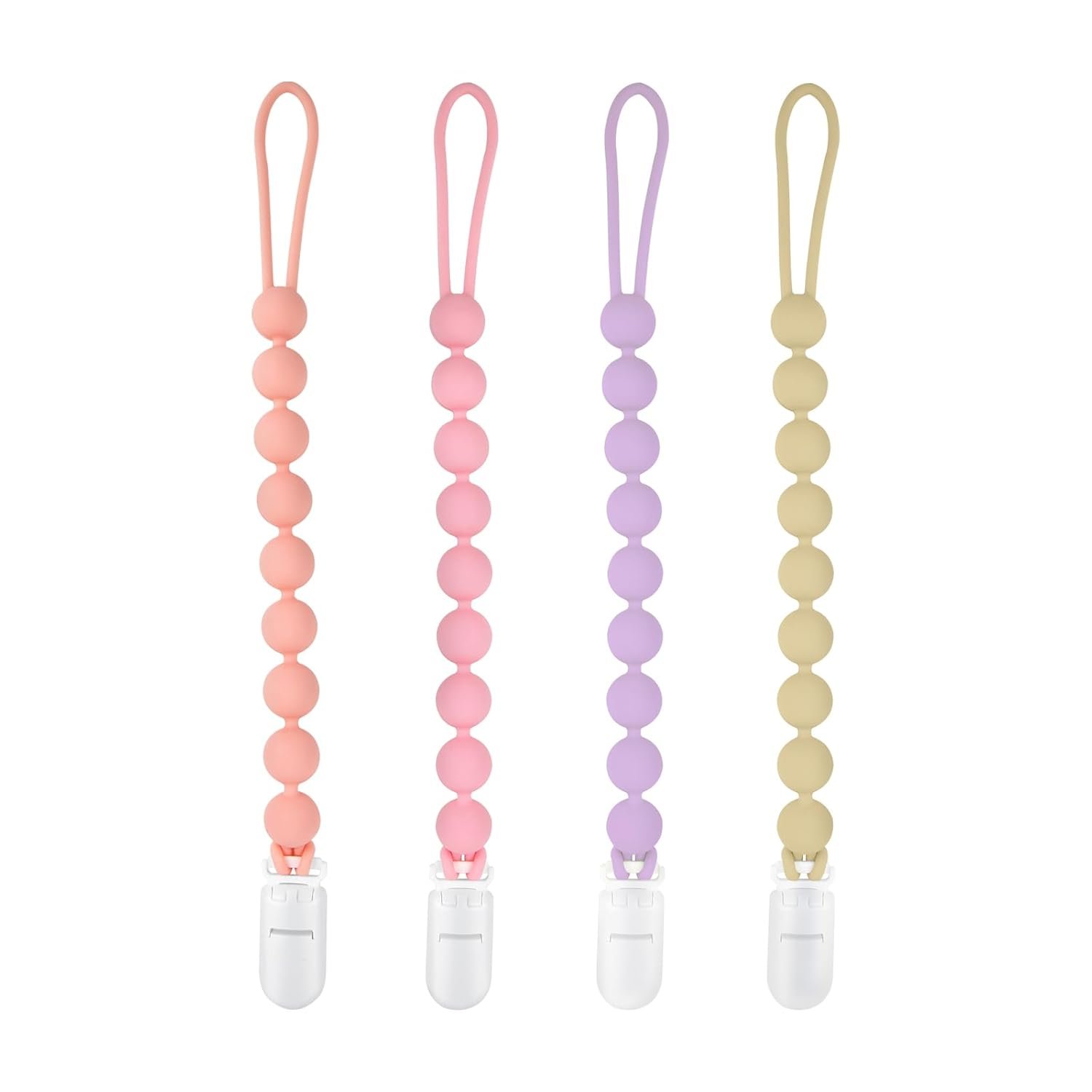 【Perfect Gift】4 pack beautiful color pacifier clips for boys and girls, suitable for most kinds of outfits. This silicone pacifier clip is suitale for any occassions and is a perfect shower gift.