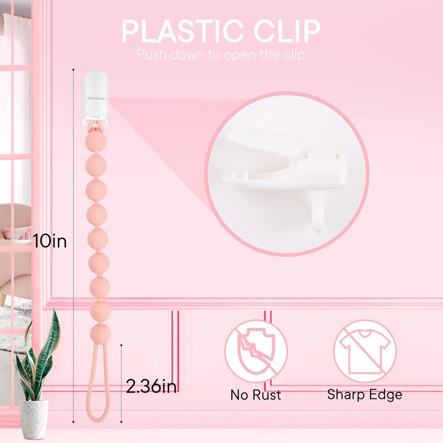 【Unique Design】The plastic clasp of the pacifier clip is durable and rust-free, and the plastic clasp of the pacifier clip is soft and secure without damaging clothing or babies.One-piece design of silicone pacifier clip is more safer for baby to use and don’t have any choking hazard. The balls of silicone paicifier holder are suitable for babies to teeth.