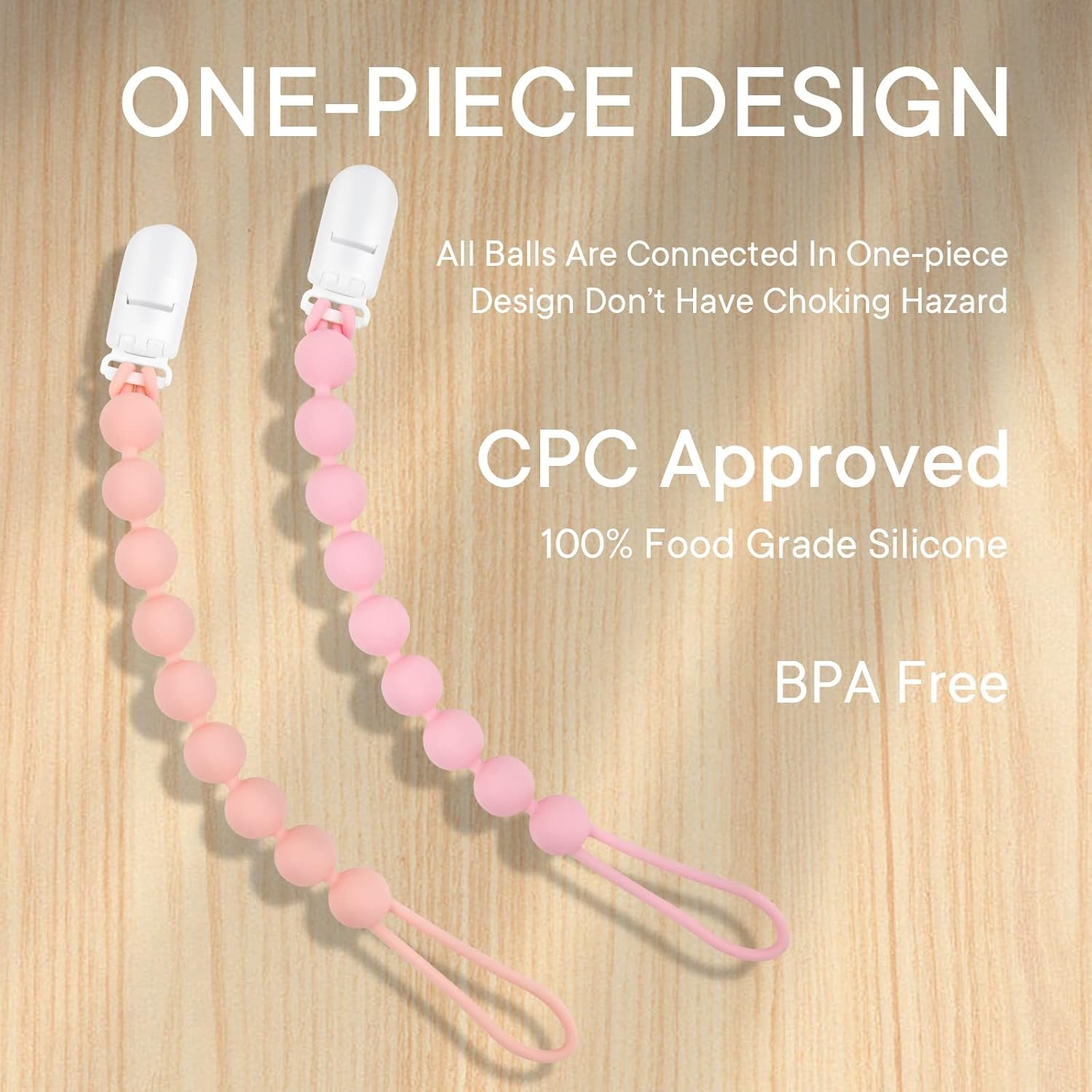 【Safety】Made from 100% BPA-free silicone, our products don’t have any harmful chemicals.The silicone pacifier clips have passed the tensile test, they are enough flexible, soft and durable, which can protect baby safe. With balls design, it is suitable for babies to teeth. Washing Machine and Dishwasher Safe.
