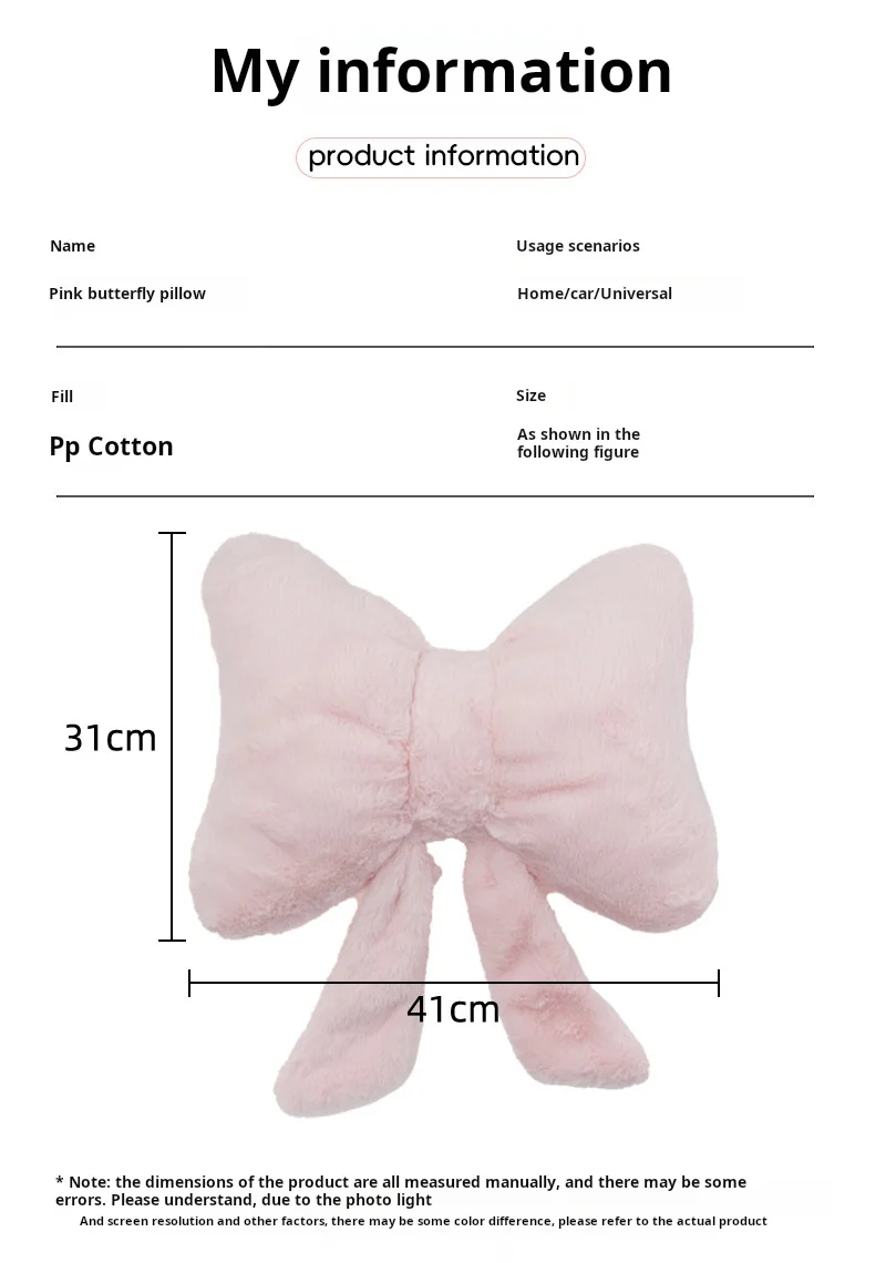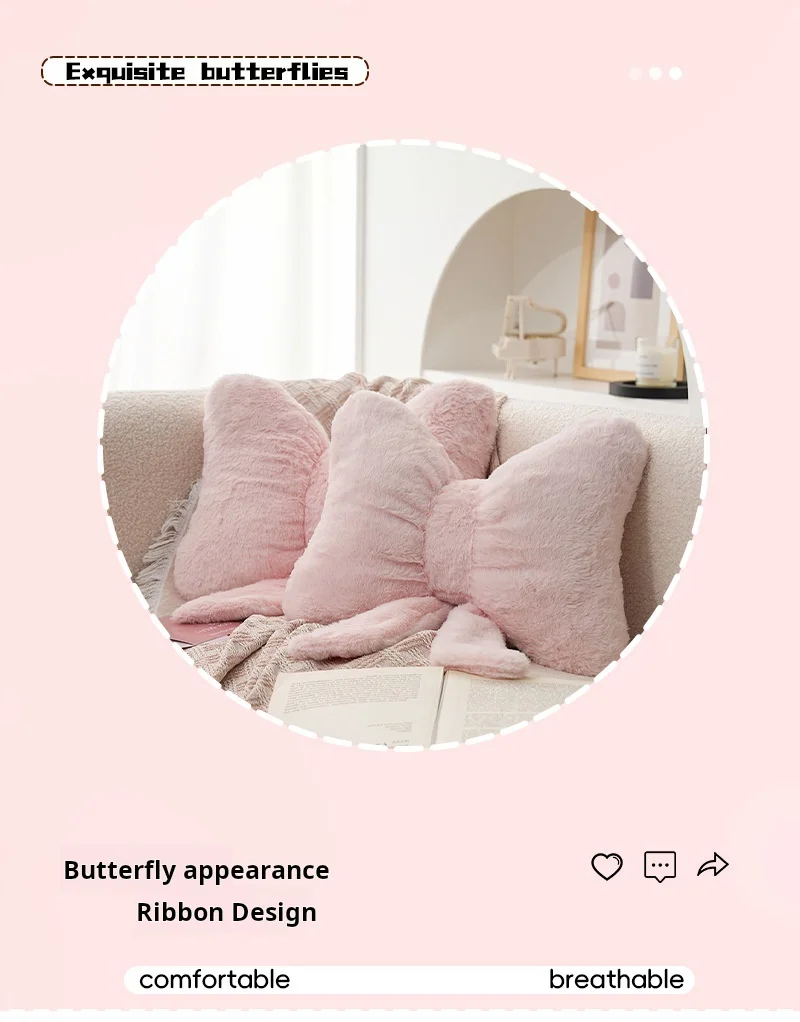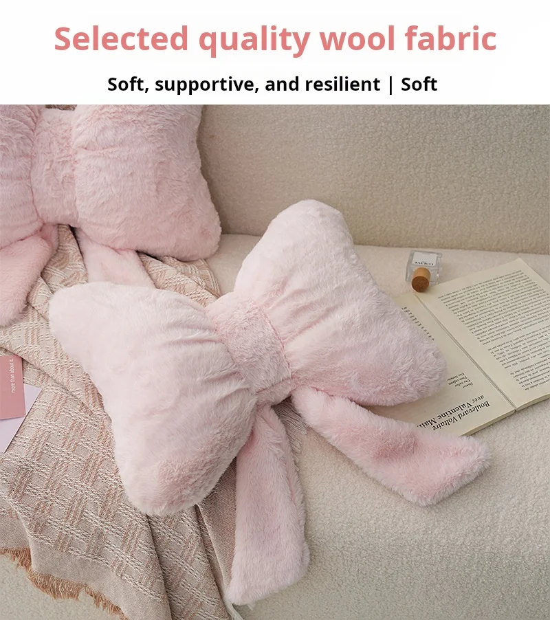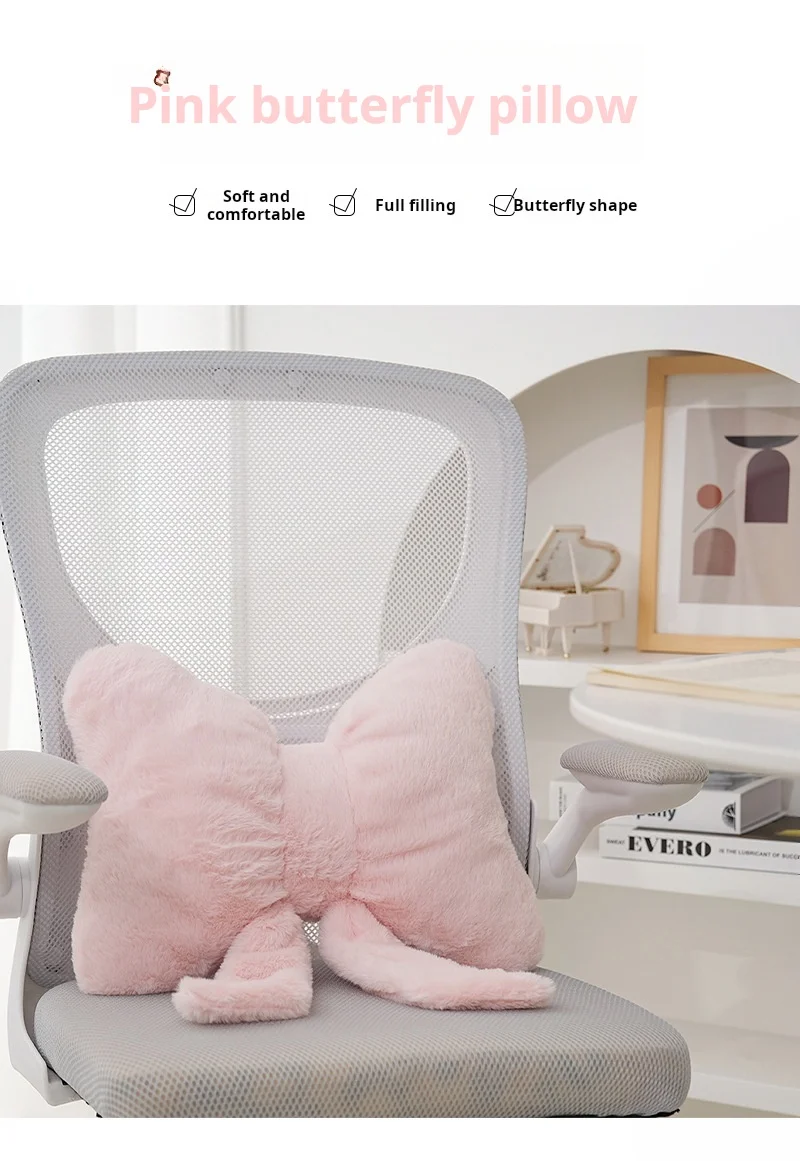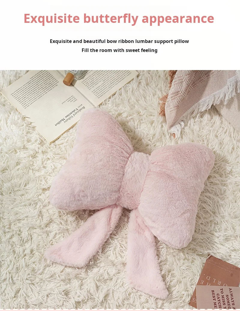 Simple bow pink sofa pillow office desk chair soft and comfortable waist support master bedroom bedside decoration