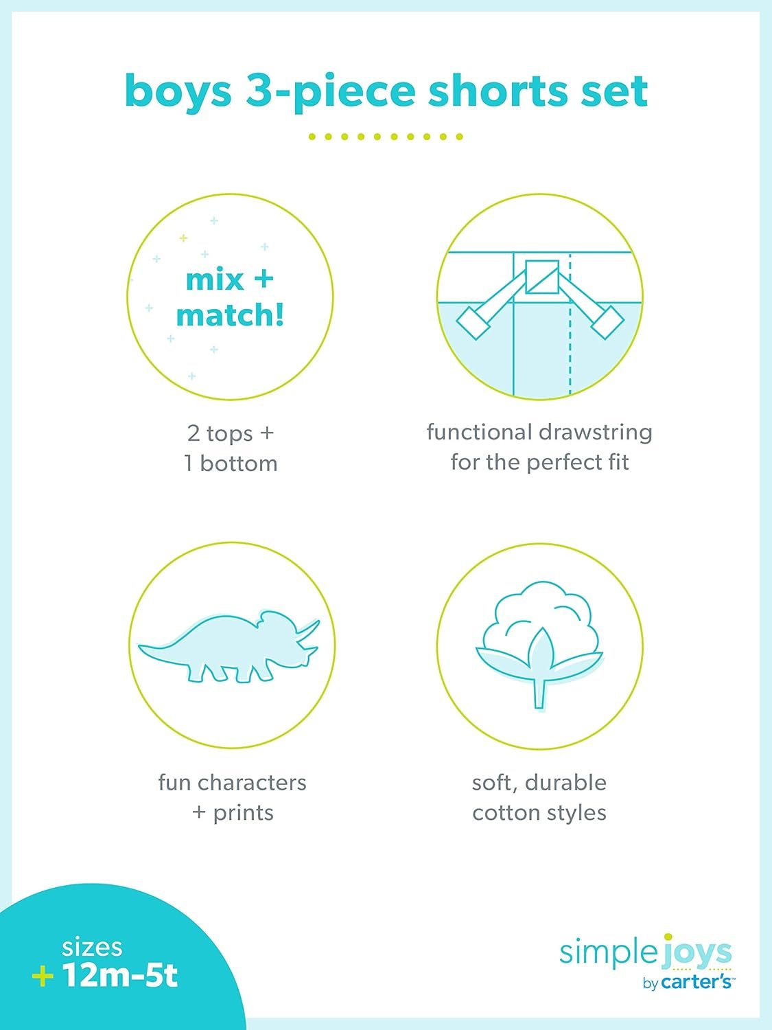 He will love this 3-piece playwear set that includes two short-sleeve tops that match back to a pair of shorts. Easy outfit!