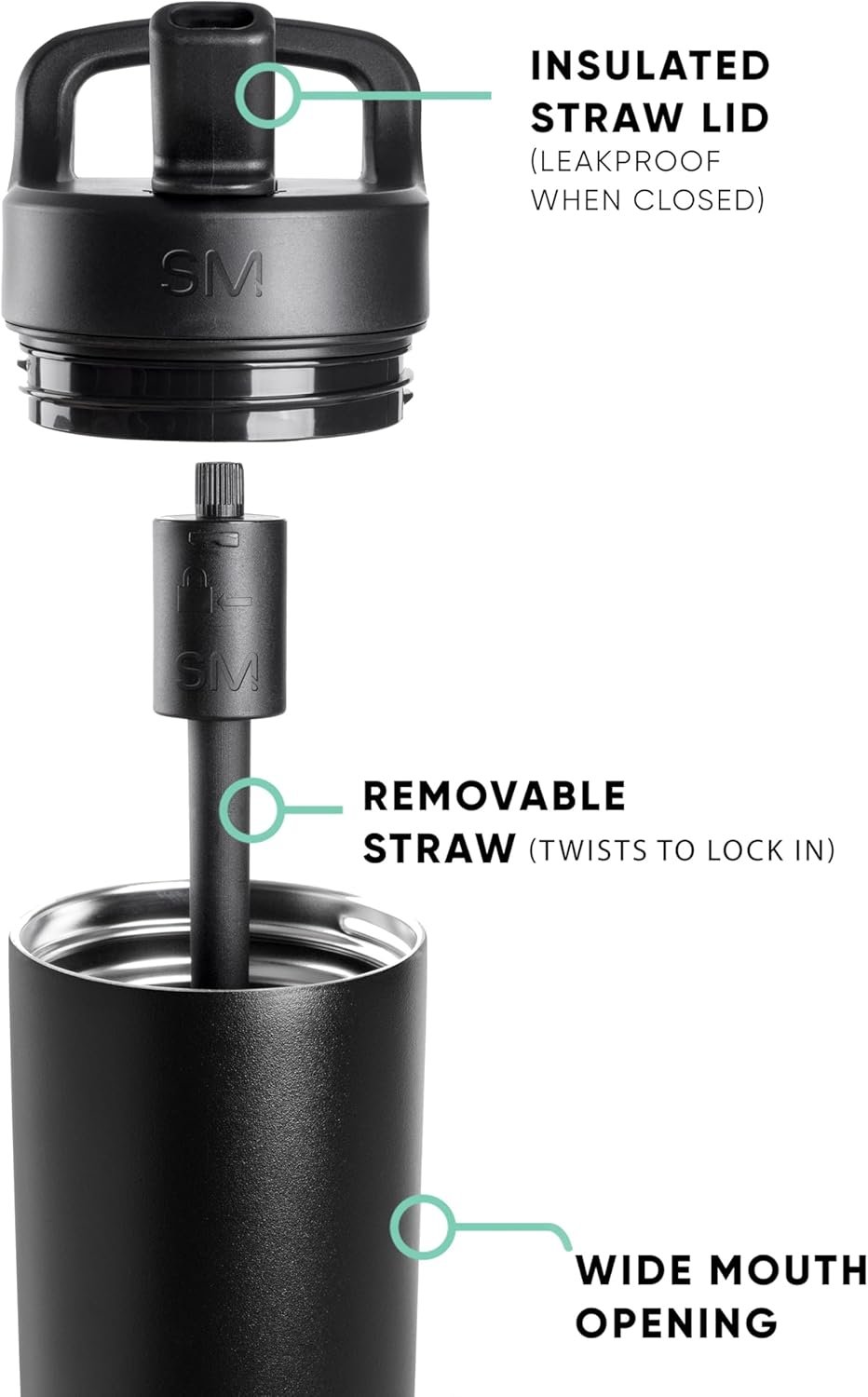 Leakproof Lid: The straw lid offers a tight seal to prevent spills and leaks. This product comes with a fitted straw that locks into the lid and was designed specifically for this vessel. It also comes with a clear straw used in other Simple Modern products. The straw lid is not recommended for hot or carbonated beverages