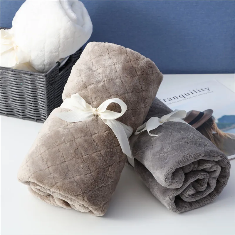 Simple Solid Color Home Sofa Nap Blanket Flannel Children Soft Skin Friendly Bath Towel Blanket Single Thickened Cover Blanket