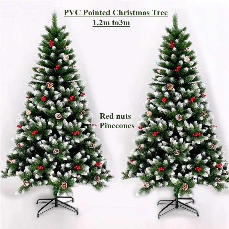 Simulation Christmas Tree PVC Spray White Pine Nut Red Fruit Christmas Tree 1.2m ~ 3m Christmas Party Atmosphere Home Decoration