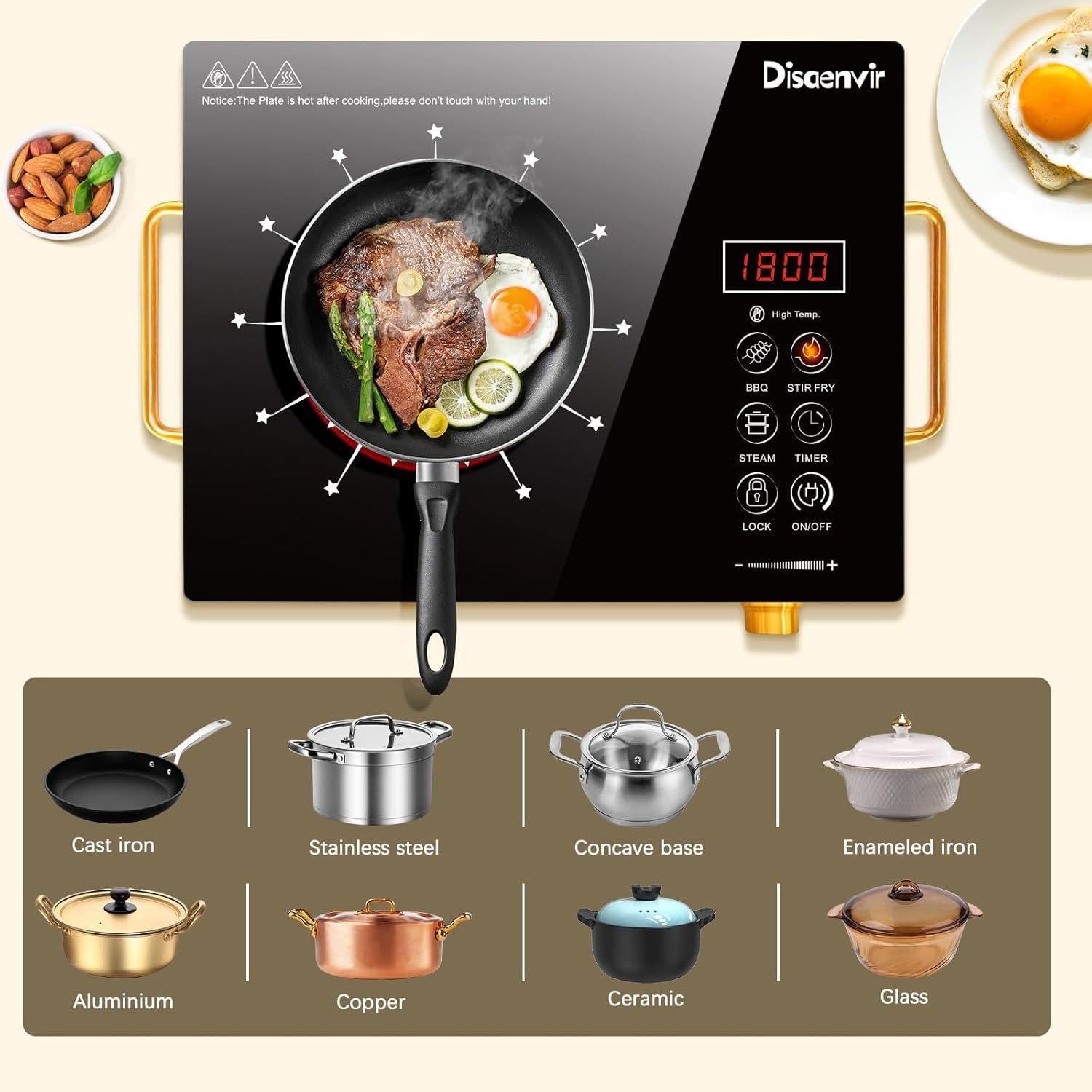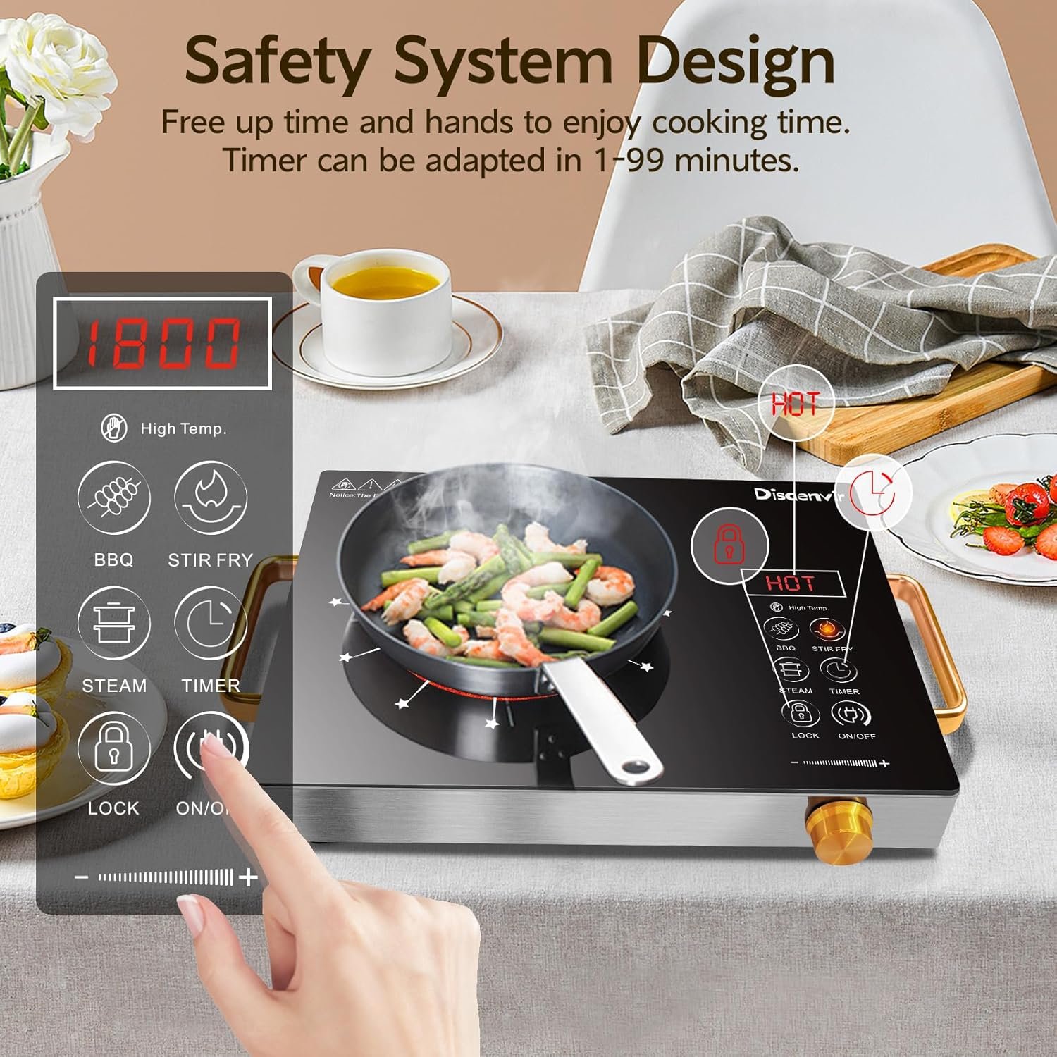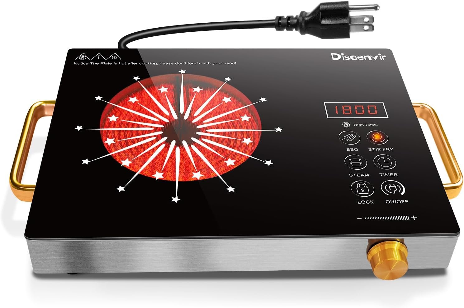 🎪| High-Performance 1800W Infrared Burner | The Disaenvir single burner electric cooktop boasts a robust 1800W infrared heating element for swift and efficient cooking. This powerful cooktop is engineered to handle a range of cooking tasks with ease, ensuring that even the most demanding culinary techniques are executed with precision and speed.