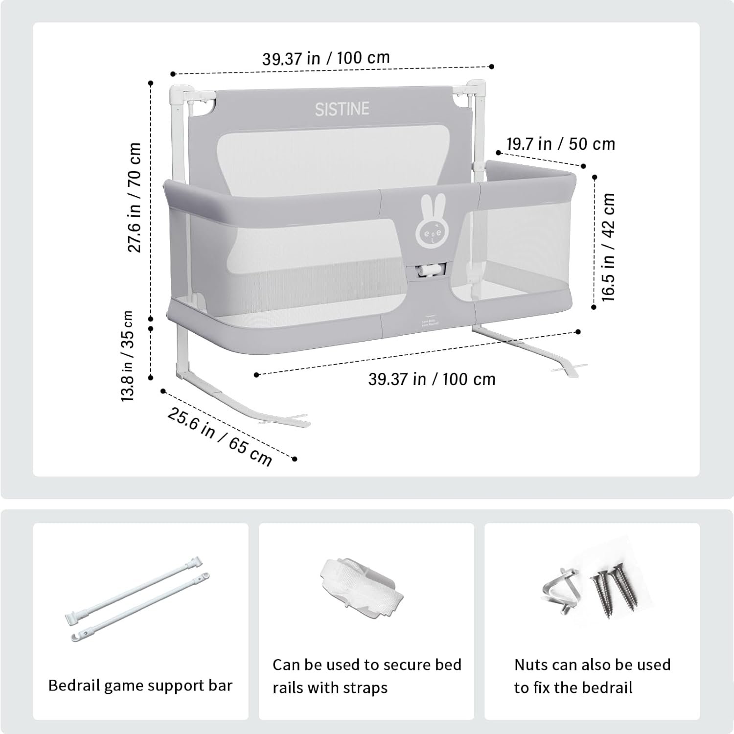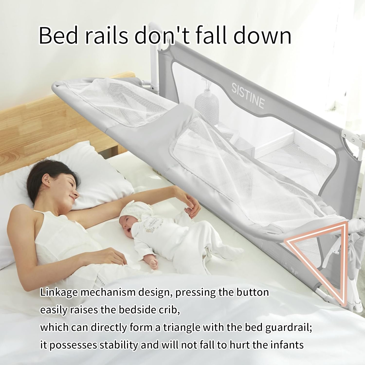 The interlocking mechanism between the bedside crib and the bed rail is designed to be stable, so there is no need to worry about the bed rail falling and causing harm to the infants