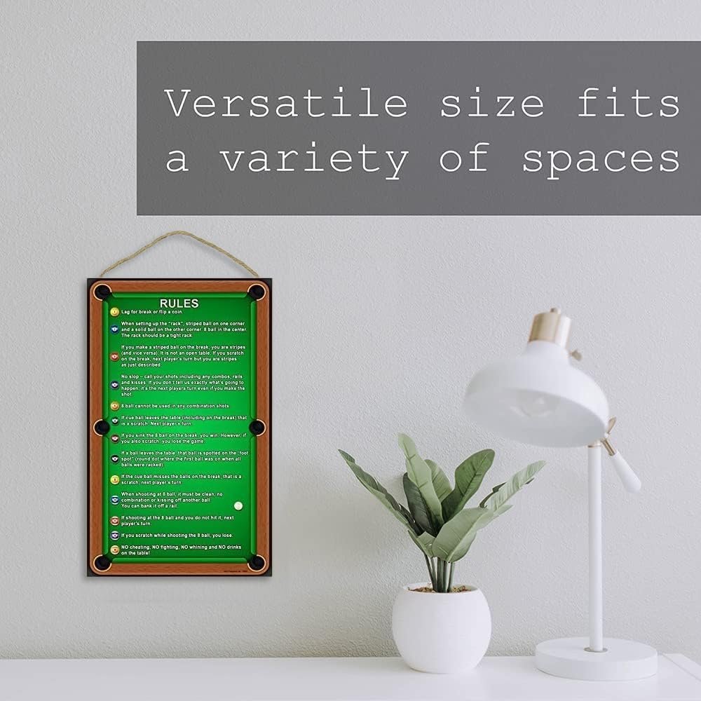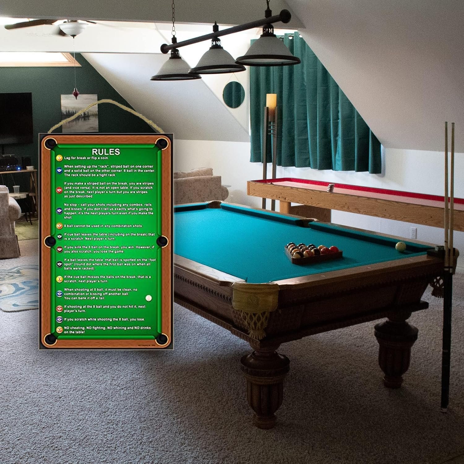 SJT ENTERPRISES, INC. Billiards/Pool Table Rules Wood Sign – Indoor Plaque Decoration for Wall – Hanging Decor for Game Room, Man Cave, Woman Cave, Pool Room, Bar – 10″ x 16″ (SJT28360)