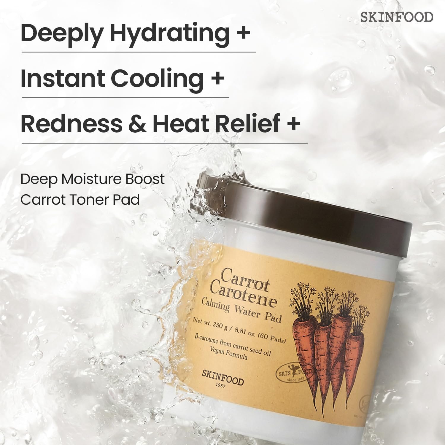🥕 K-Beauty No.1 Carrot Toner Pad from SKINFOOD – Since 1957 : The SKINFOOD Carrot Toner Pad is a bestselling Korean toner pad loved at Olive Young, Korea’s leading beauty retailer. With over 10 million pads sold, it has ranked No.1 for five consecutive years, earning trust for its gentle, calming performance. Rooted in SKINFOOD’s food-based skincare philosophy since 1957—Plant your skin—this vegan, cruelty-free formula reflects a legacy of nutritious ingredients, effective care, and a commitment to healthier skin and a more sustainable lifestyle.