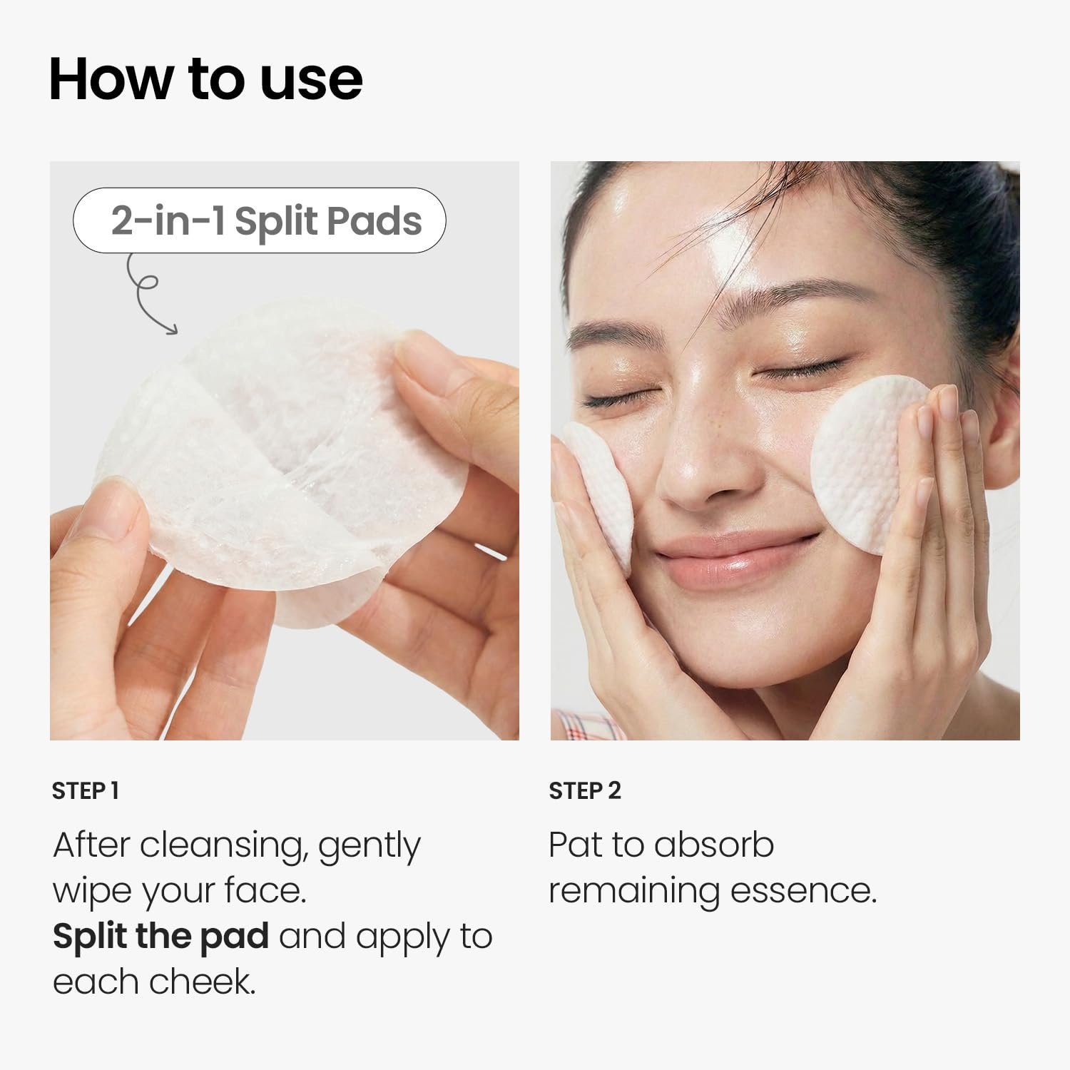 🥕 How to Use — Multi-Use Stretch Toner Pads : Made with soft 100% cotton, these Korean toner pads can be used as daily face toner pads to gently wipe away residue and refine skin texture without irritation. For targeted care, stretch or split the pad in half and apply it like a mini facial mask on areas needing cooling or soothing, such as cheeks or forehead. Gentle enough to replace rough face towels, this multi-use toner pad offers flexible, skin-friendly care for everyday routines.
