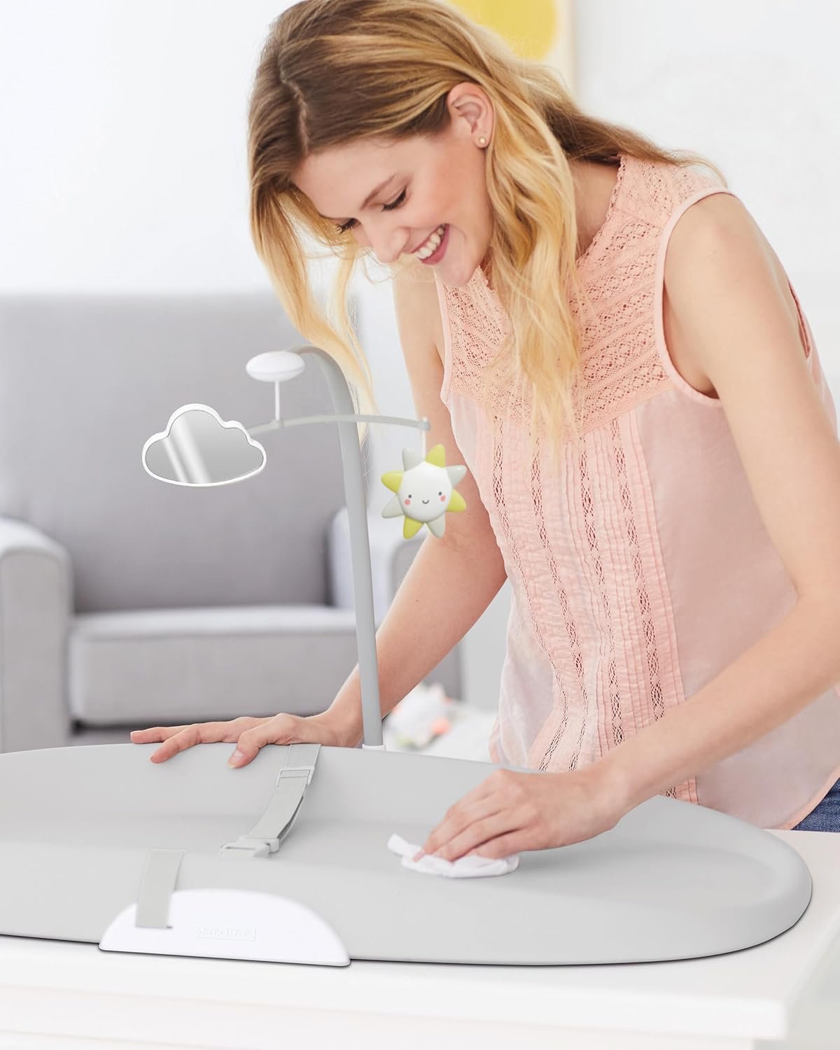 Tuck-Away Toy Bar for Baby Entertainment: The built-in, tuck-away toy bar includes a baby-safe mirror to engage and entertain your little one during diaper changes