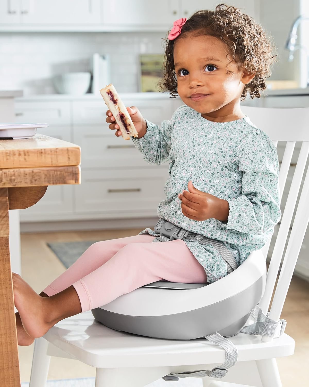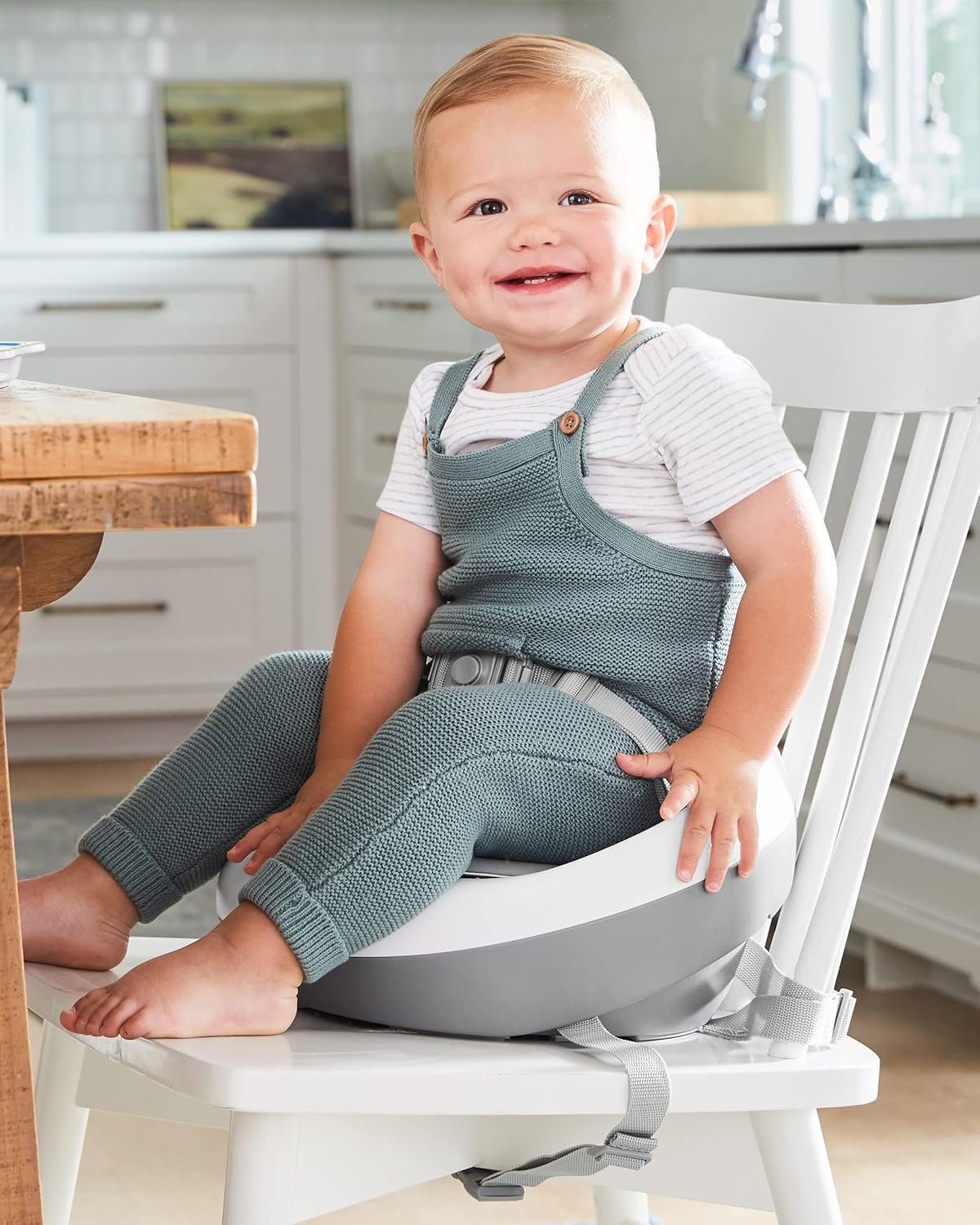 Skip Hop Booster Seat for Dining Table, Sleek Seat Booster, Grey/White