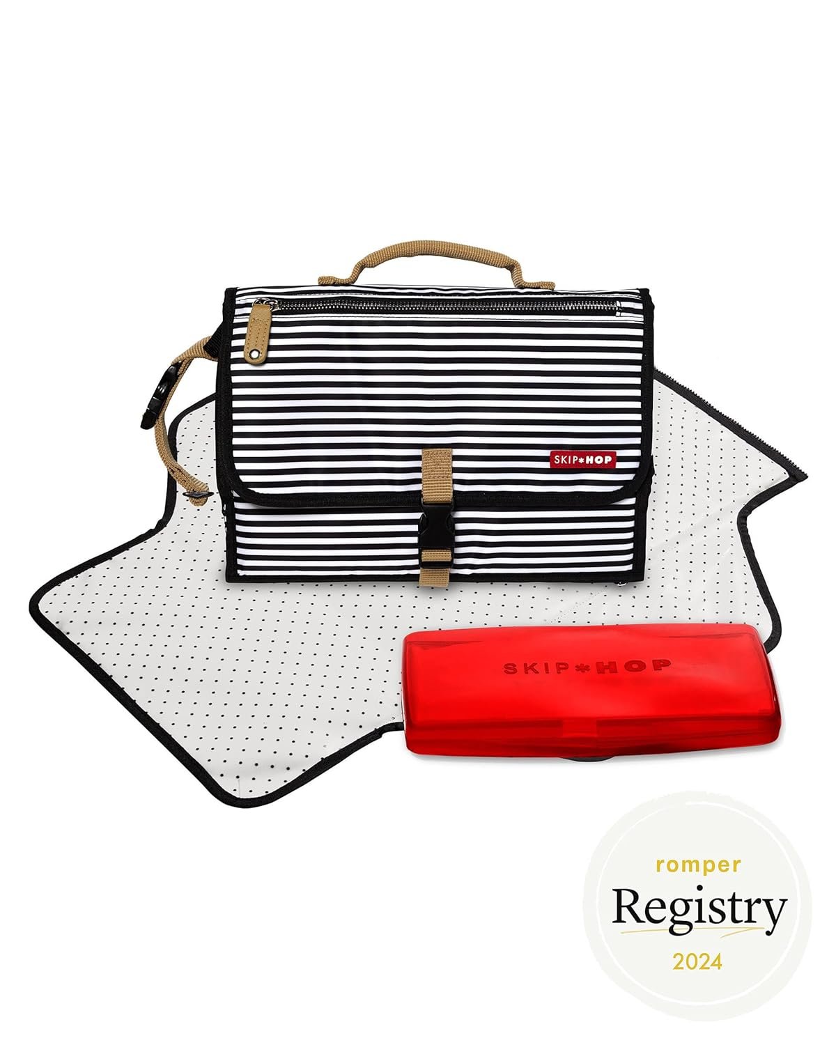 Our ultra-convenient clutch features a wipe-clean, zip-off changing pad and translucent wipes case for timely refills
