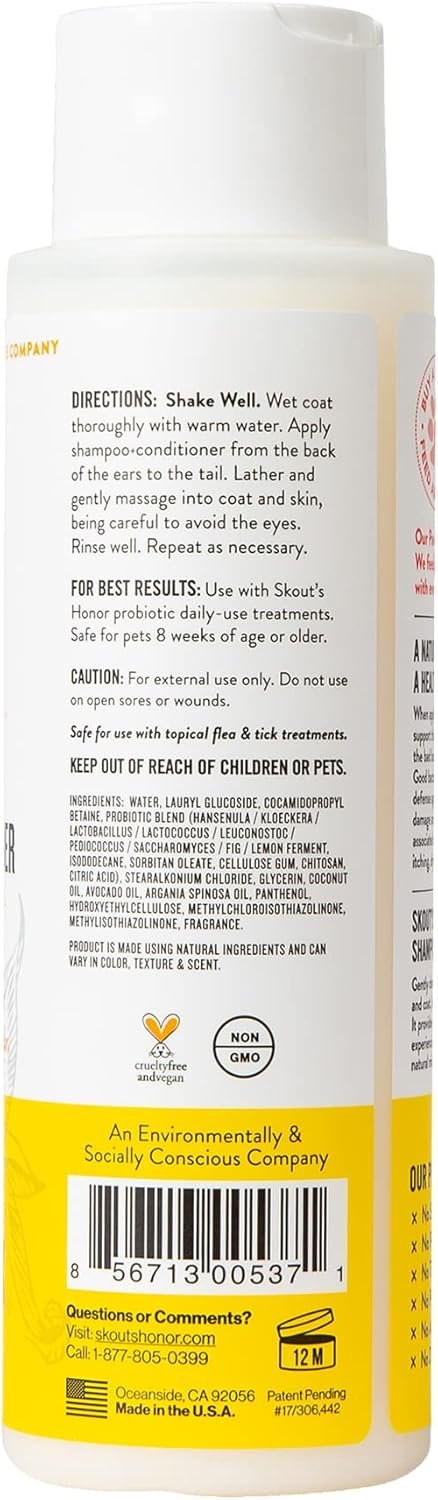 Skout’s Honor Probiotic Pet Shampoo & Conditioner with Avocado Oil & Omega-3s, 97% Natural, Paraben & Sulfate-Free, Cruelty-Free, 16oz, Honeysuckle