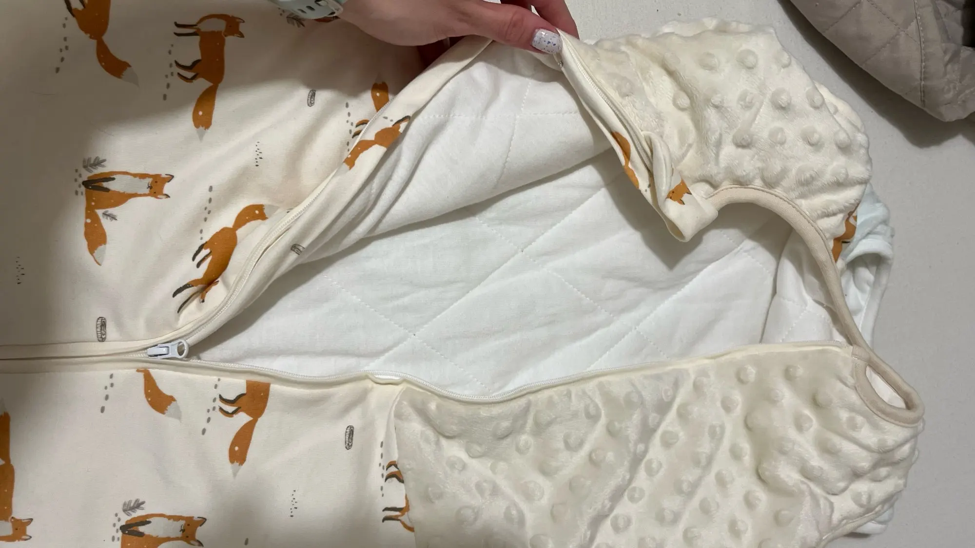 Soft, warm, top quality. Our baby sleeps great in it! Clear purchase recommendation.