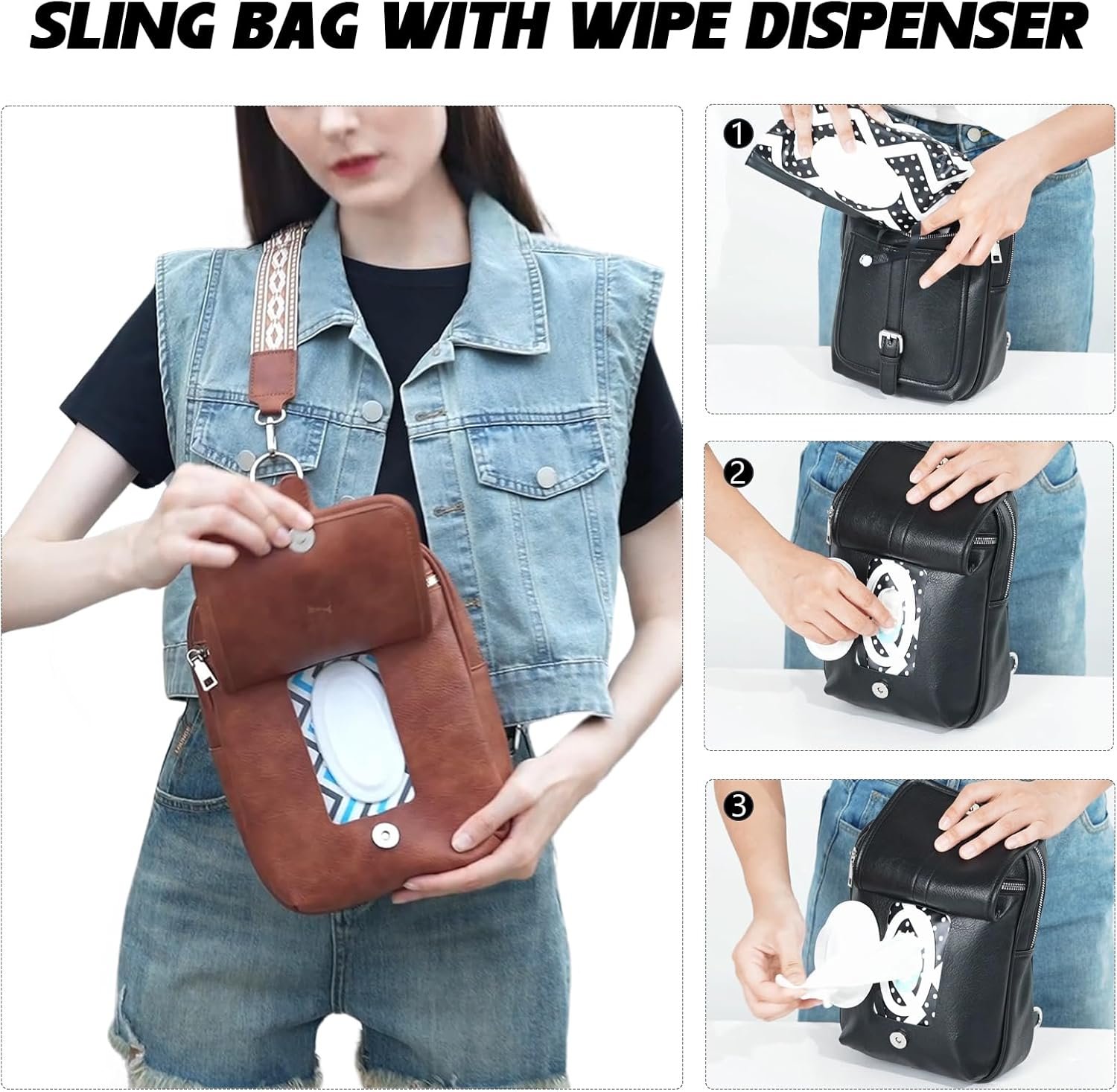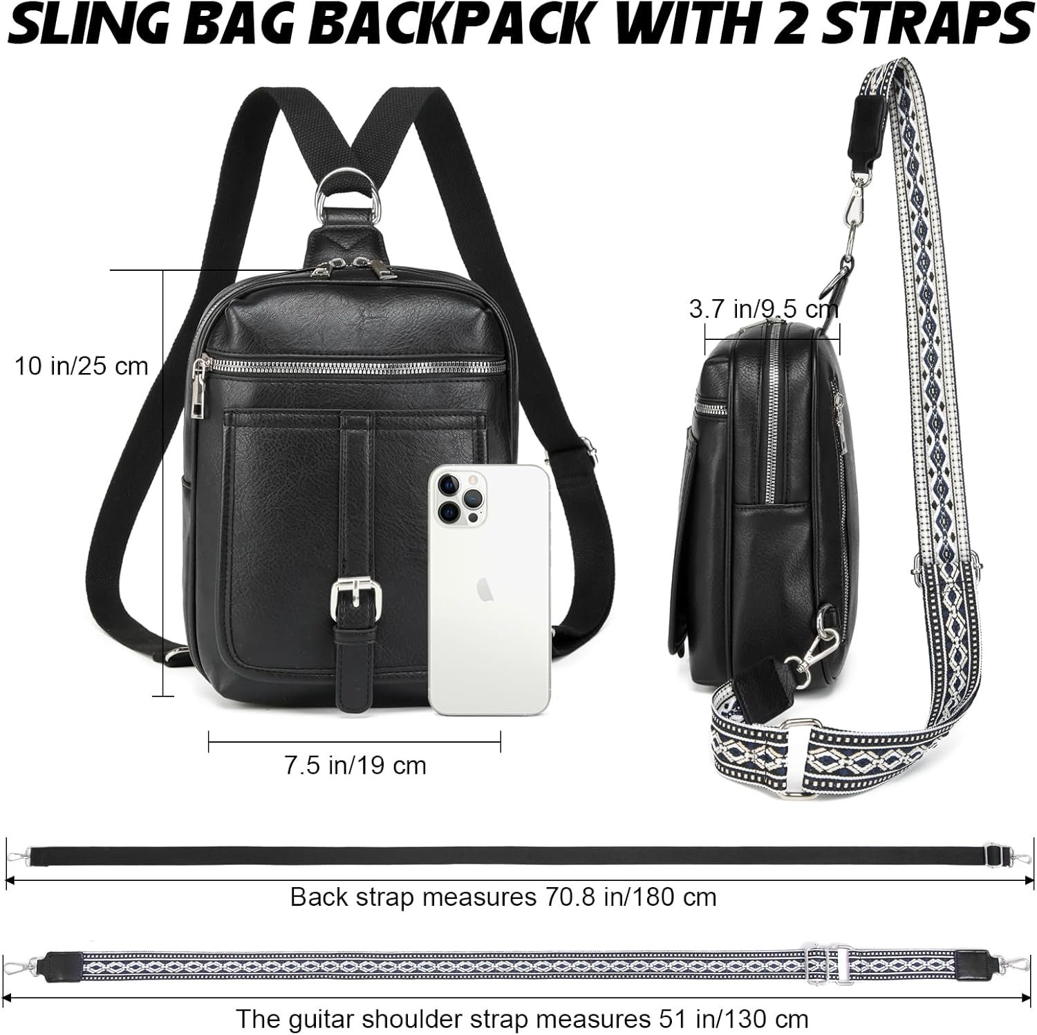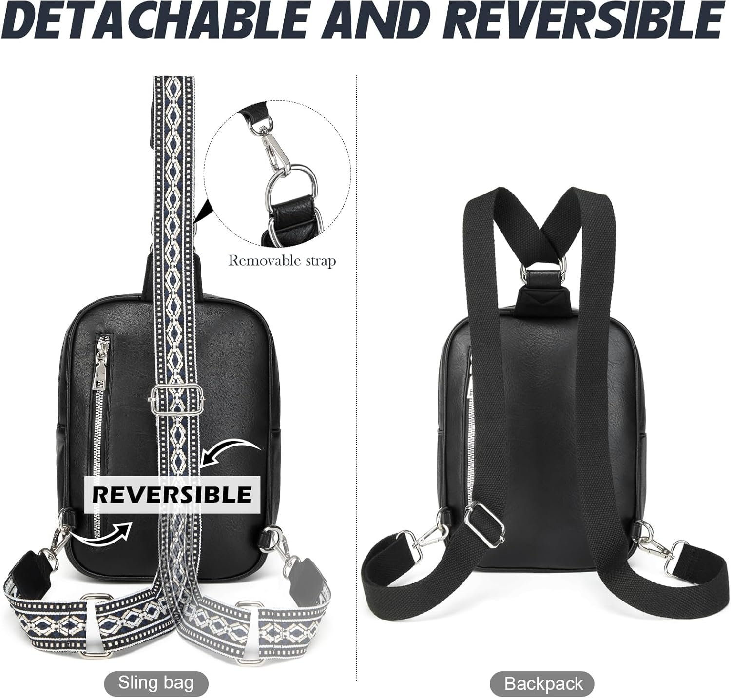 Sling Bag Crossbody Backpack – 2 in 1 Leather Cross Body Bag Fanny Pack with 2 Removable Straps
