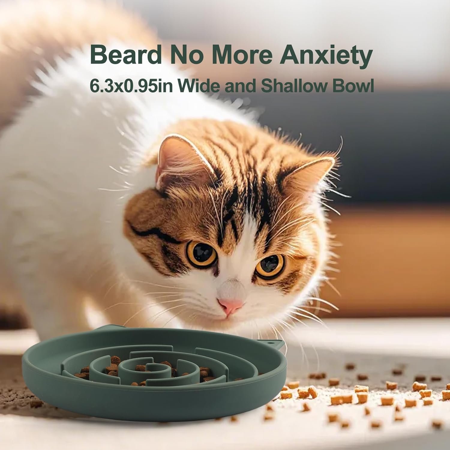 Slow Feeder Cat Bowl, Durable Anti-Gulping Cat Food Bowl for Healthy Digestion, Maze Design Easy to Clean for Wet/Dry Food(Green)