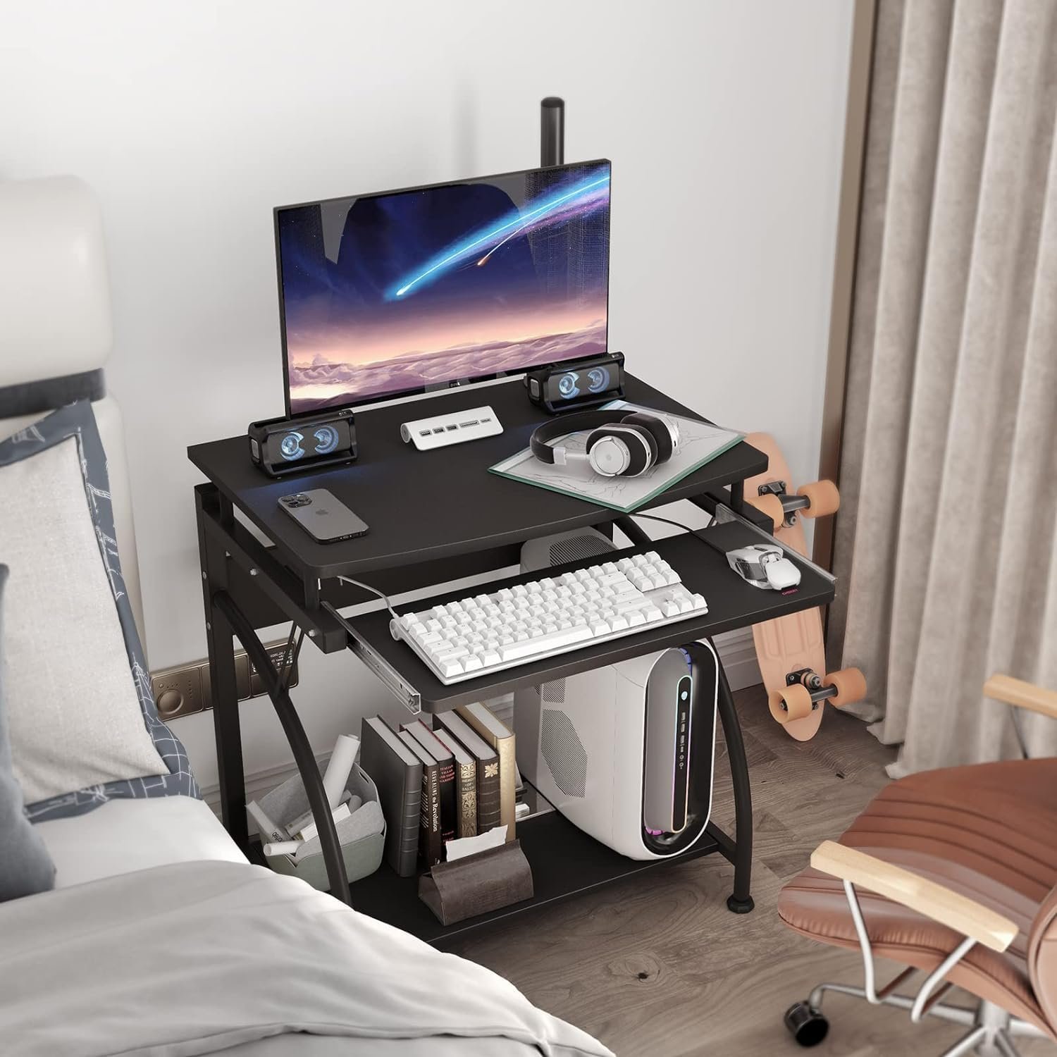 More than A Computer Desk: Whether you need a small computer desk to hold a monitor and desktop or a bedroom desk with storage and style, this model can do it all. You can work, study, or play games using this small laptop desk.