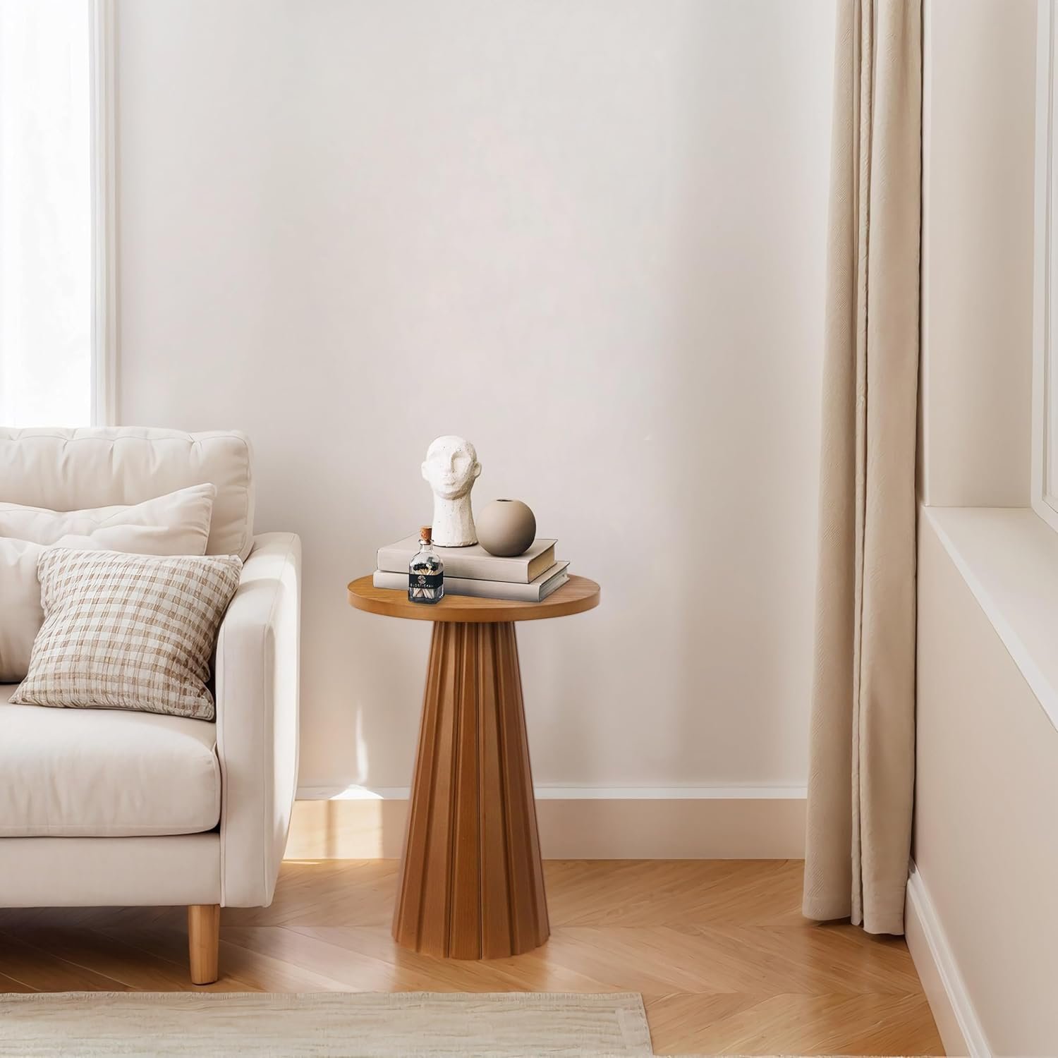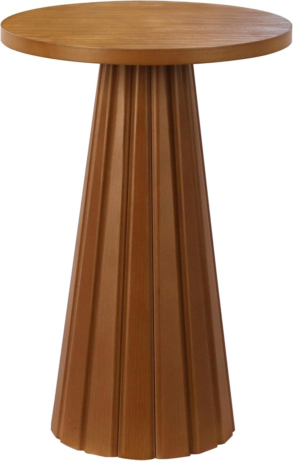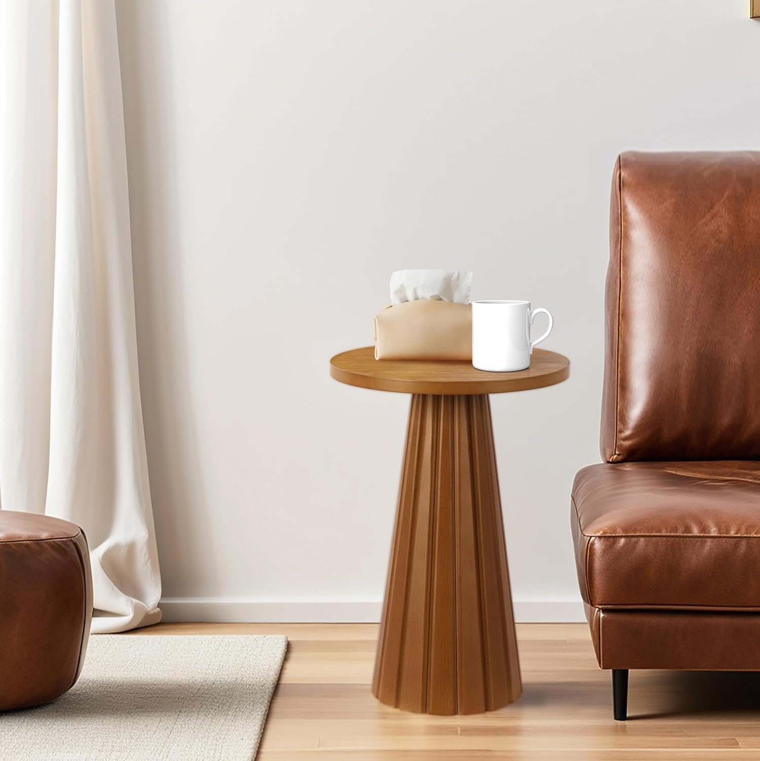 Small Pedestal Side Table, Round Modern Drink Table for Small Space Living Room, Bedroom (Brown)