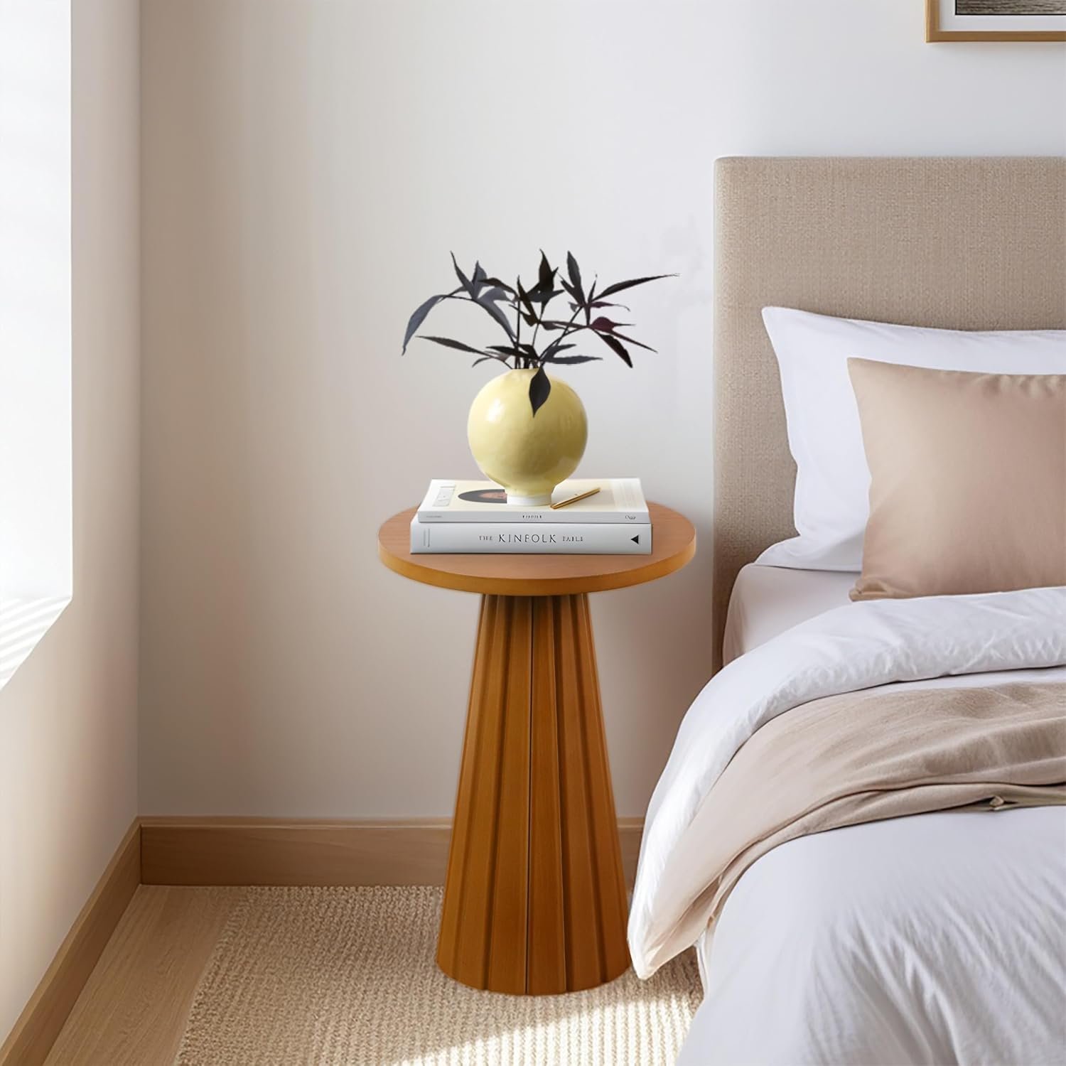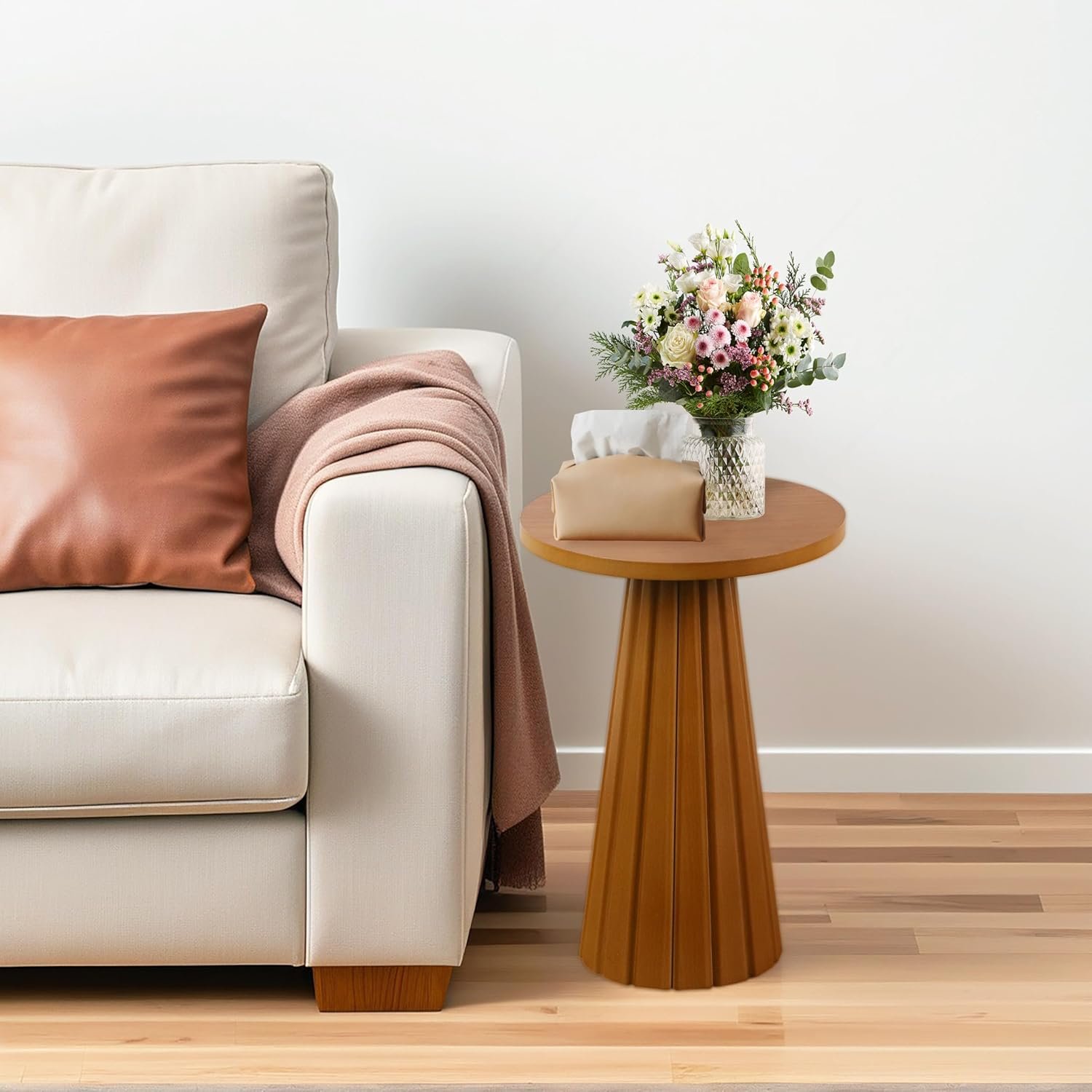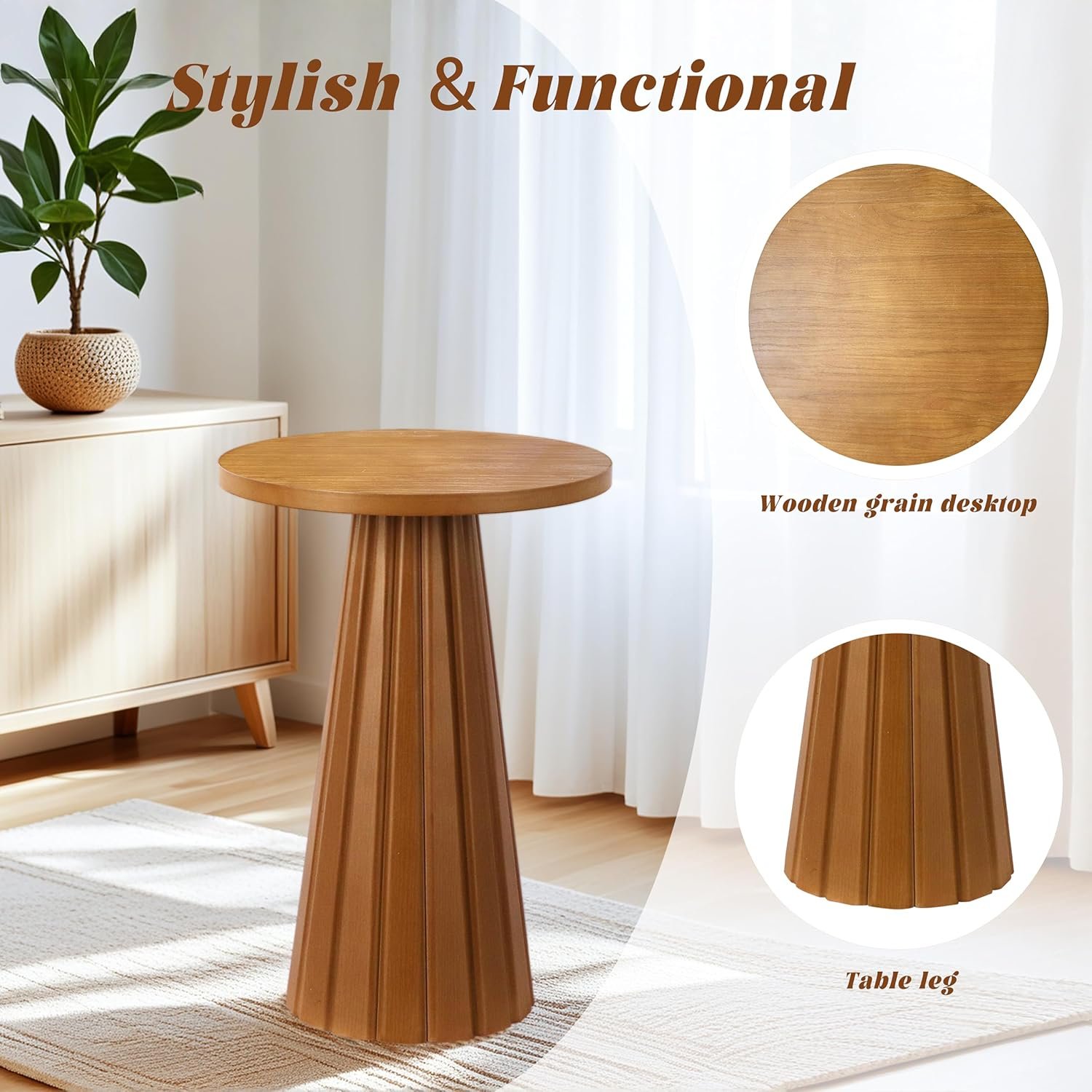 Small Pedestal Side Table, Round Modern Drink Table for Small Space Living Room, Bedroom (Brown)