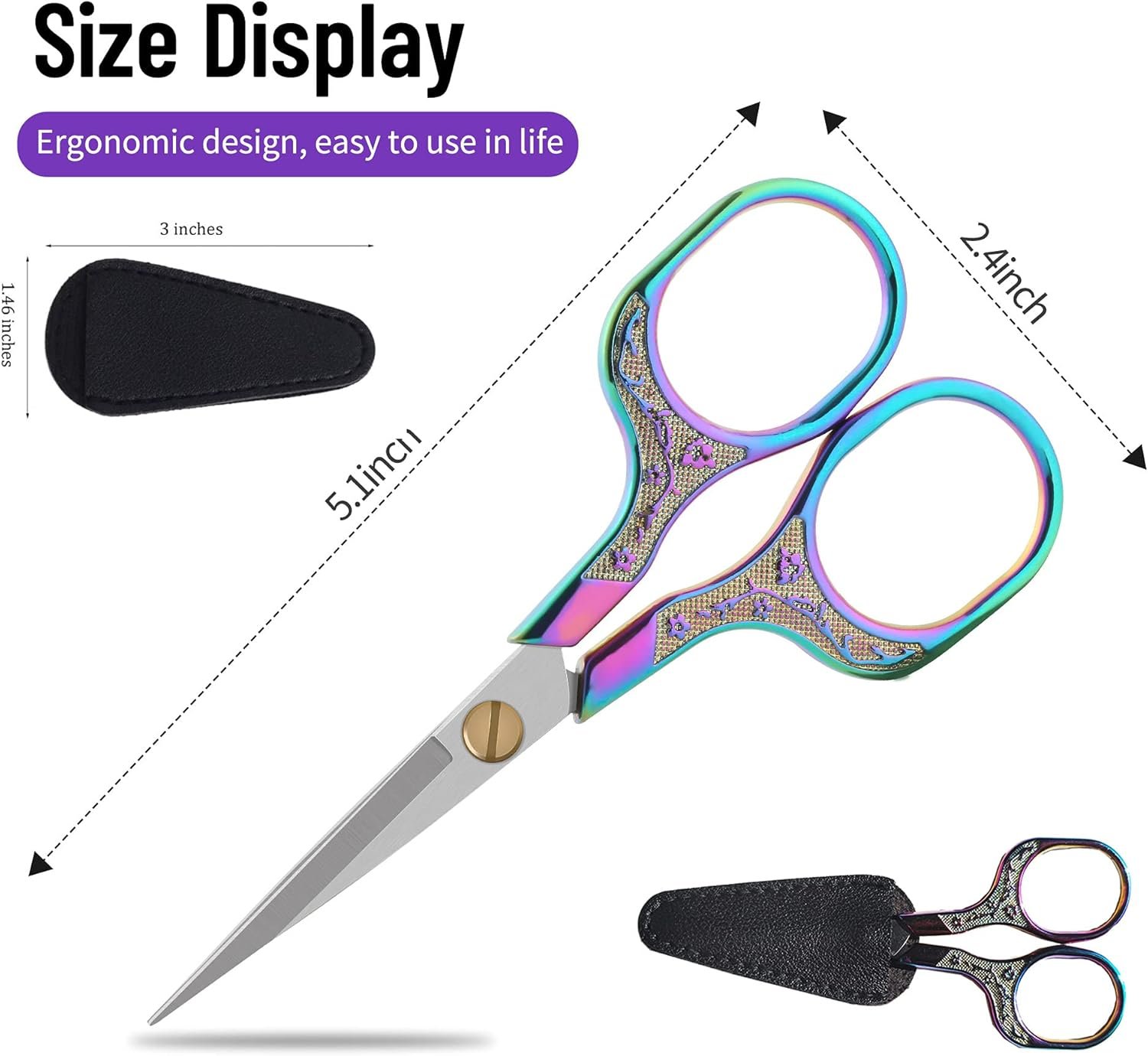 SMOOTH CUT EACH TIME: The size of the sewing embroidery scissors is about 5.1 x 2.4 inches, Each blade features micro serrations for cutting smoothly and straight tips offer accuracy to trim small details like embroidery, sewing, cross-stitch, crafts, snipping threads, hairdressing, etc.