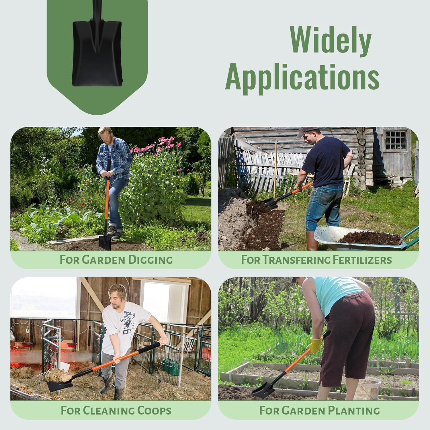 Use as digging shovelUse as kids shovelUse as garden shovelUse as trench shovelUse as farming shovelUse as yardworks shovelUse as camping shovelUse as landscaping shovel
