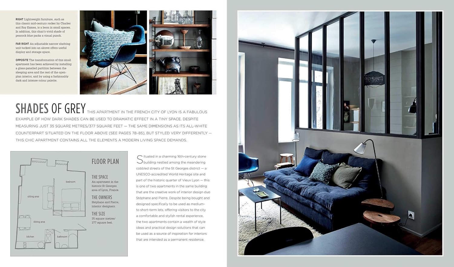 Sara Emslie embraces the positive aspects of living in a compact home and explores design and style solutions to the practical issues of living with limited space. In the first chapter, Elements of Design, Sara tackles clever design and planning details and discusses how to make the most of any small home. Next, in Elements of Style, she gives thought to decorating solutions and style ideas for a compact interior, considering storage, furniture, and display. Finally, Sara visits a variety of real-life small spaces, taking an in-depth look at imaginative treatments for pocket-sized interiors and showcasing tiny homes with lots of character. These include a terraced railroad worker’s cottage, a miniscule Parisian pied-à-terre, a tiny studio apartment with a clever mezzanine that incorporates a bathroom, and a pint-sized coastal hideaway. Each case study has a detailed floor plan plus measurements.