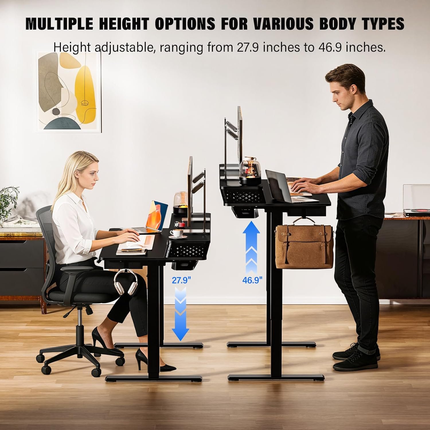 【Sturdy and Durable Steel Frame】: The stand up desk uses legs made of 1.5mm industrial-grade steel, providing stable support for the desktop. Its multi-functional design makes it suitable as a home office desk, gaming table, study desk, or creative studio workbench.