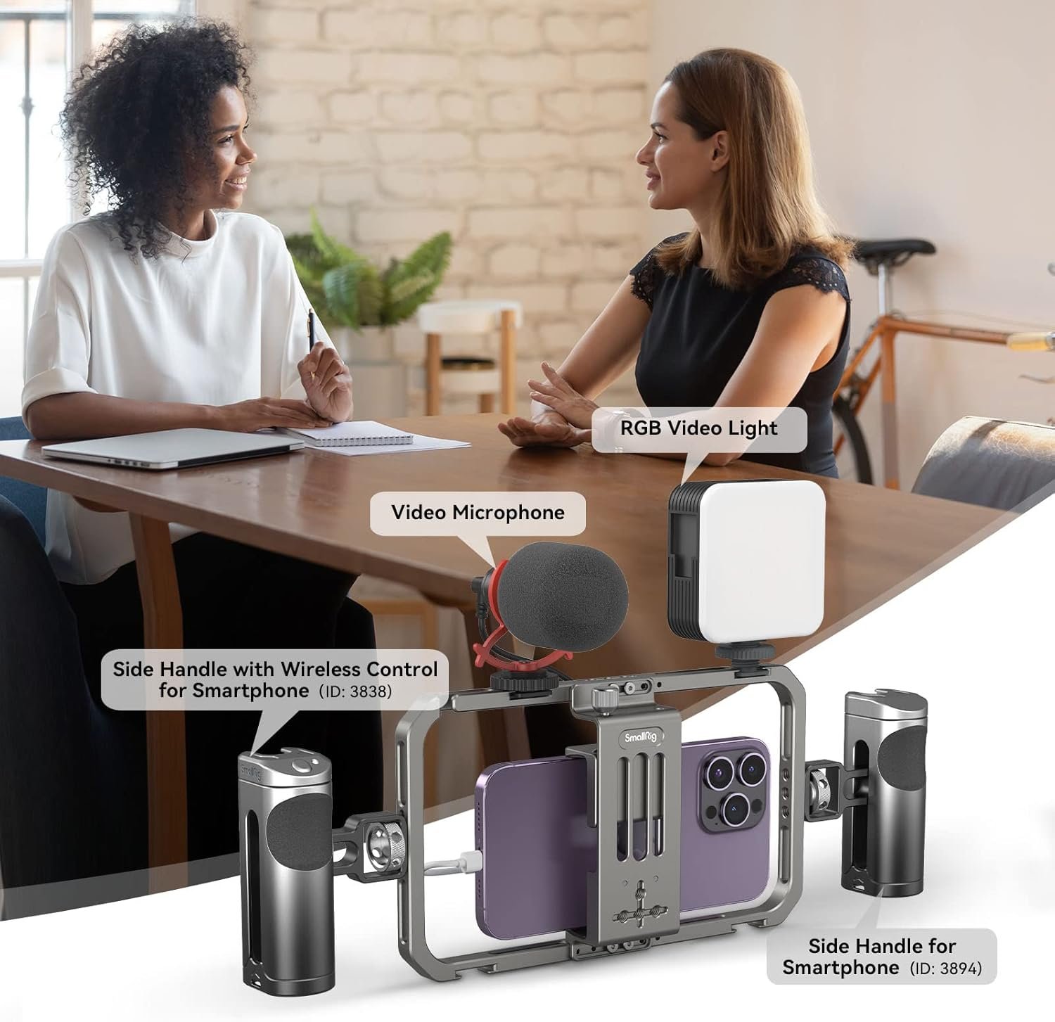 SmallRig Universal Smartphone Video Rig for iPhone 16 15 14 for Samsung, Filmmaking Vlogging Rig Aluminium Alloy Phone Video Cage Grip with Cold Shoe Mount for Videomaker Videographer
