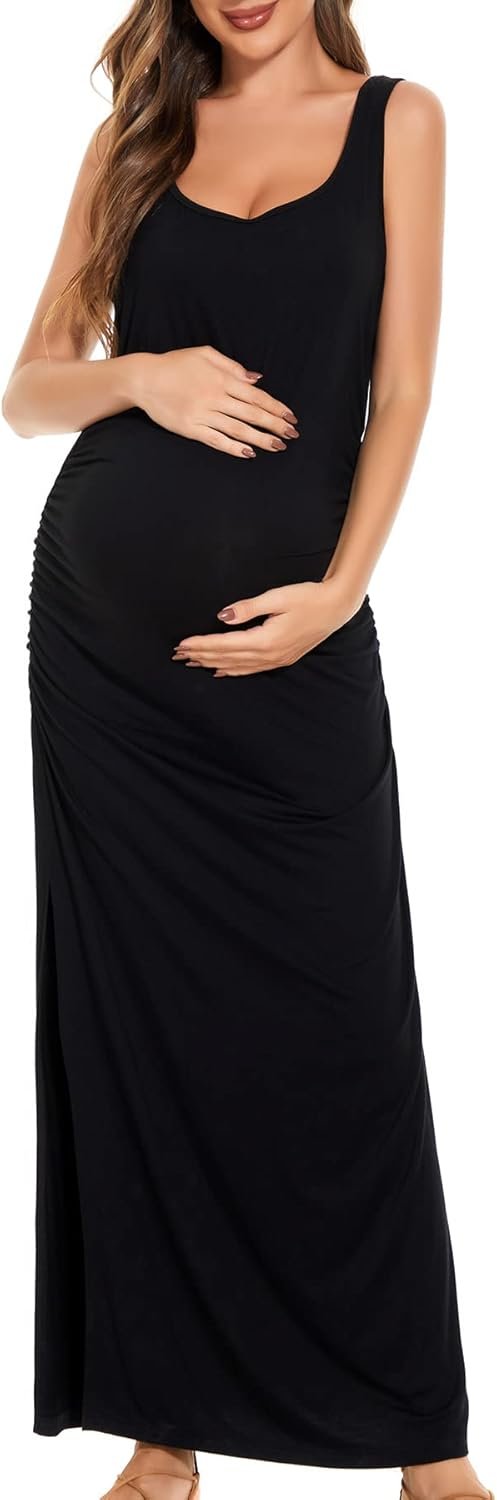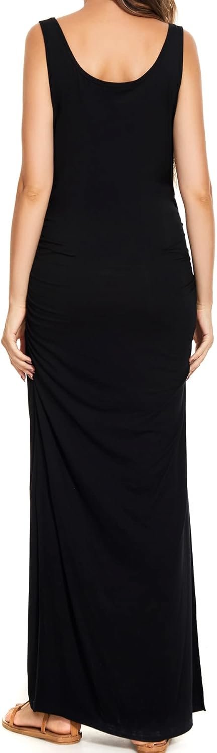Smallshow Women’s Split Long Maternity Dress Sleeveness Ruched Pregnancy Clothes