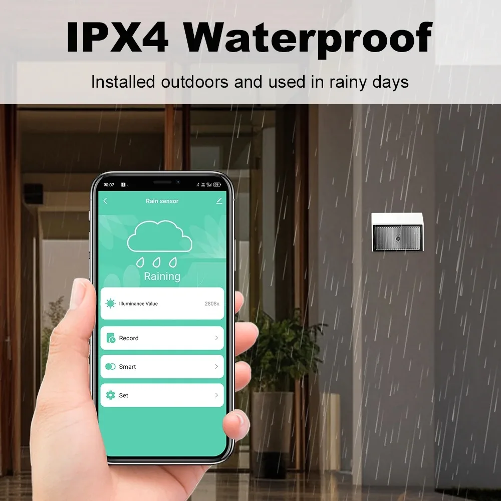 Compatible with Tuya and Smart Life apps, this sensor allows you to remotely monitor outdoor rain, illuminance valueAutomatic window closing is possible through intelligent linkage.