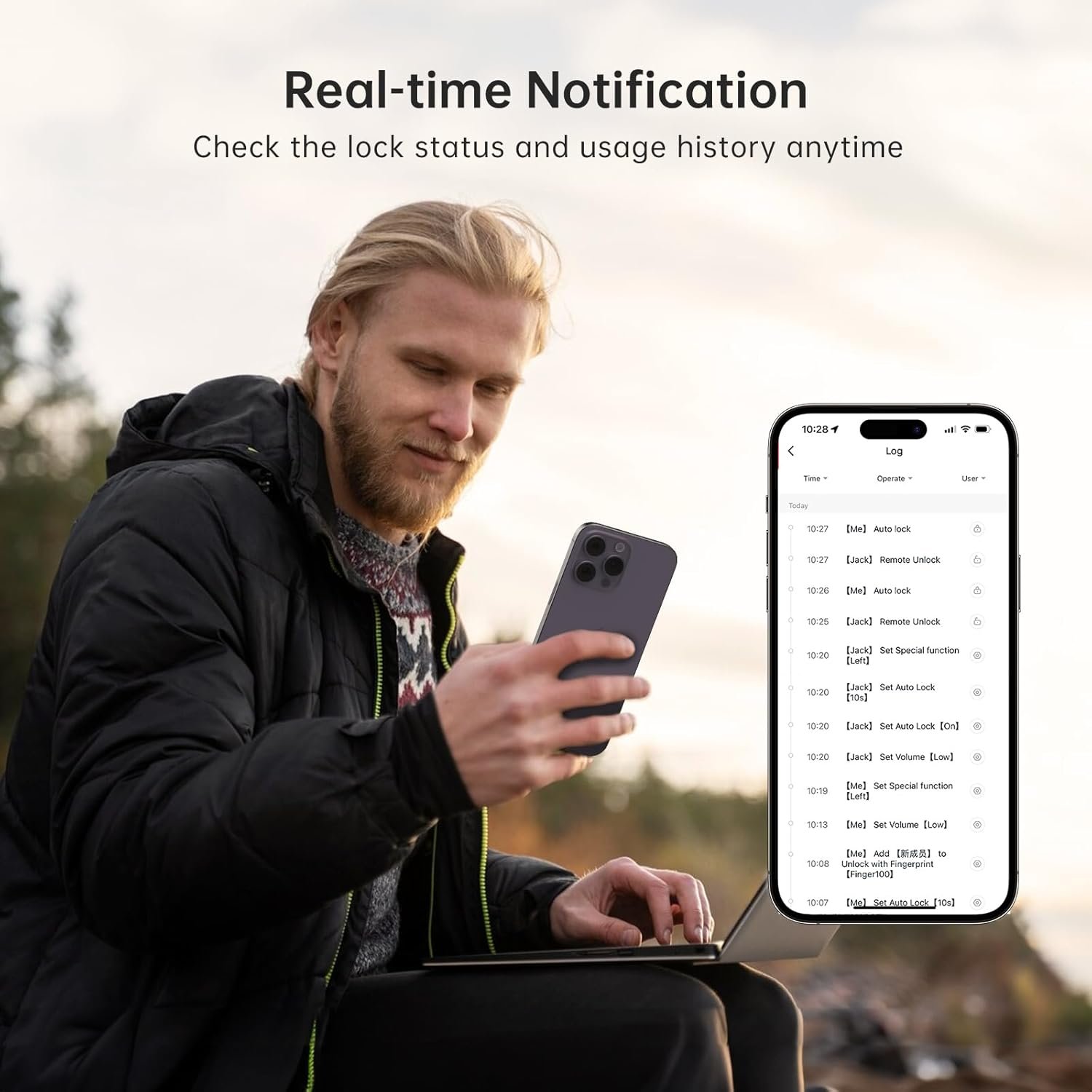 WiFi Remote Access: Our smart WiFi deadbolt, paired with an additional WiFi gateway, allows you to remotely lock and unlock your door. Enjoy the convenience of Receive real-time notifications, remotely share or modify passcodes for visitors, and view lock history , check door electric usage logs.