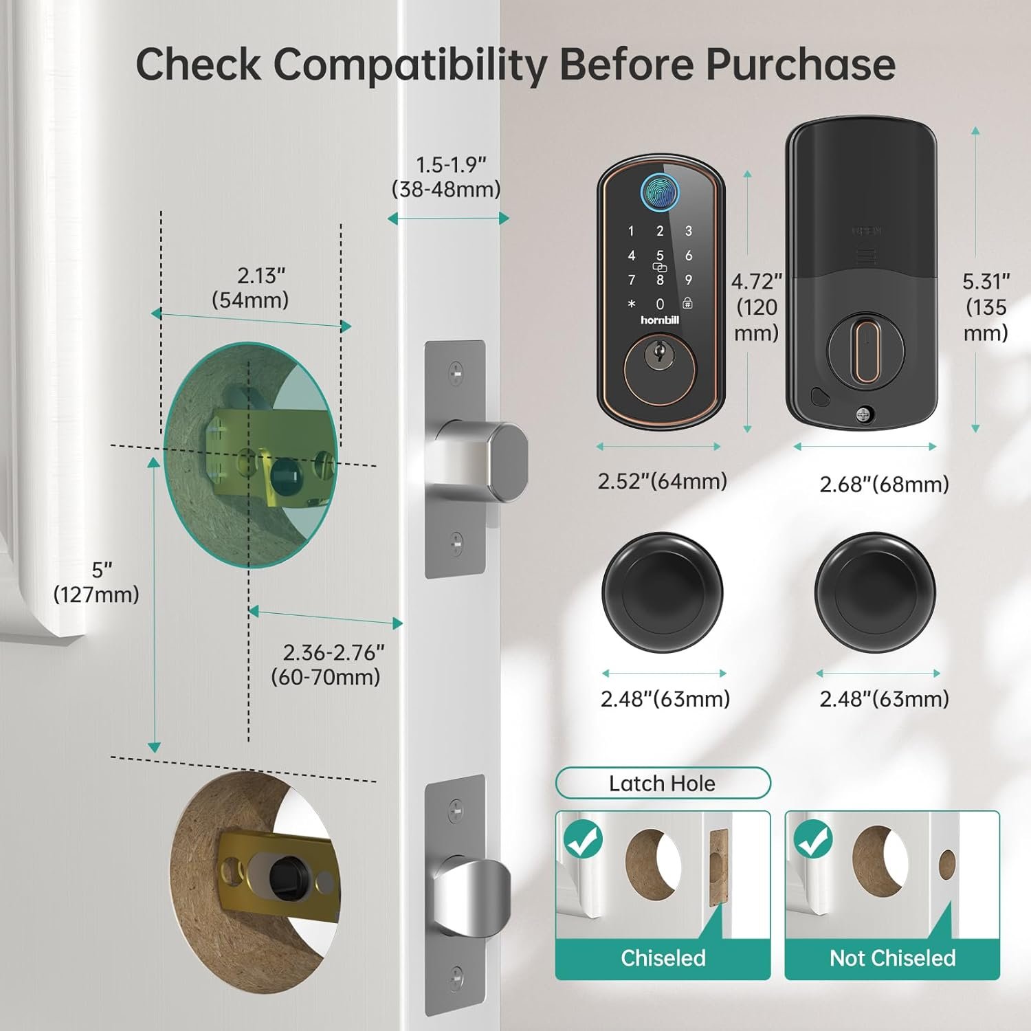 Reliable Service : Hornbill smart locks for entry doors offer 12 months replacement, along with a lifetime of troubleshooting . After receiving the front door lock sets, a follow-up email with instructions will be sent to ensure their proper functioning.Any questions such as app or installation issues, please contact us at any time.