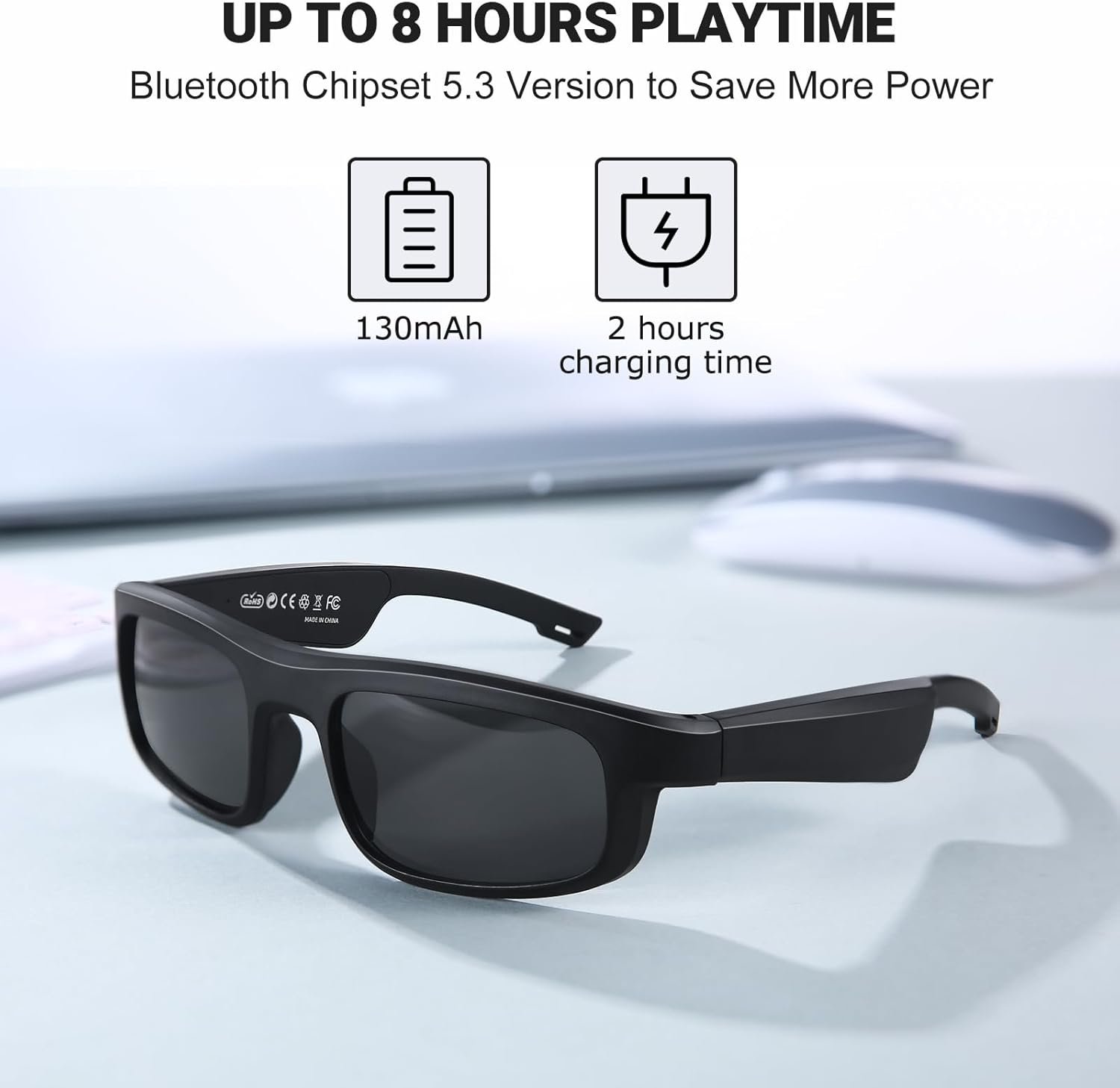 Polarized Sunglasses Lenses: LVTEL smart glasses features UV400 polarized full-protection lenses protect your eyes from the sun with excellent color, clarity and contrast.