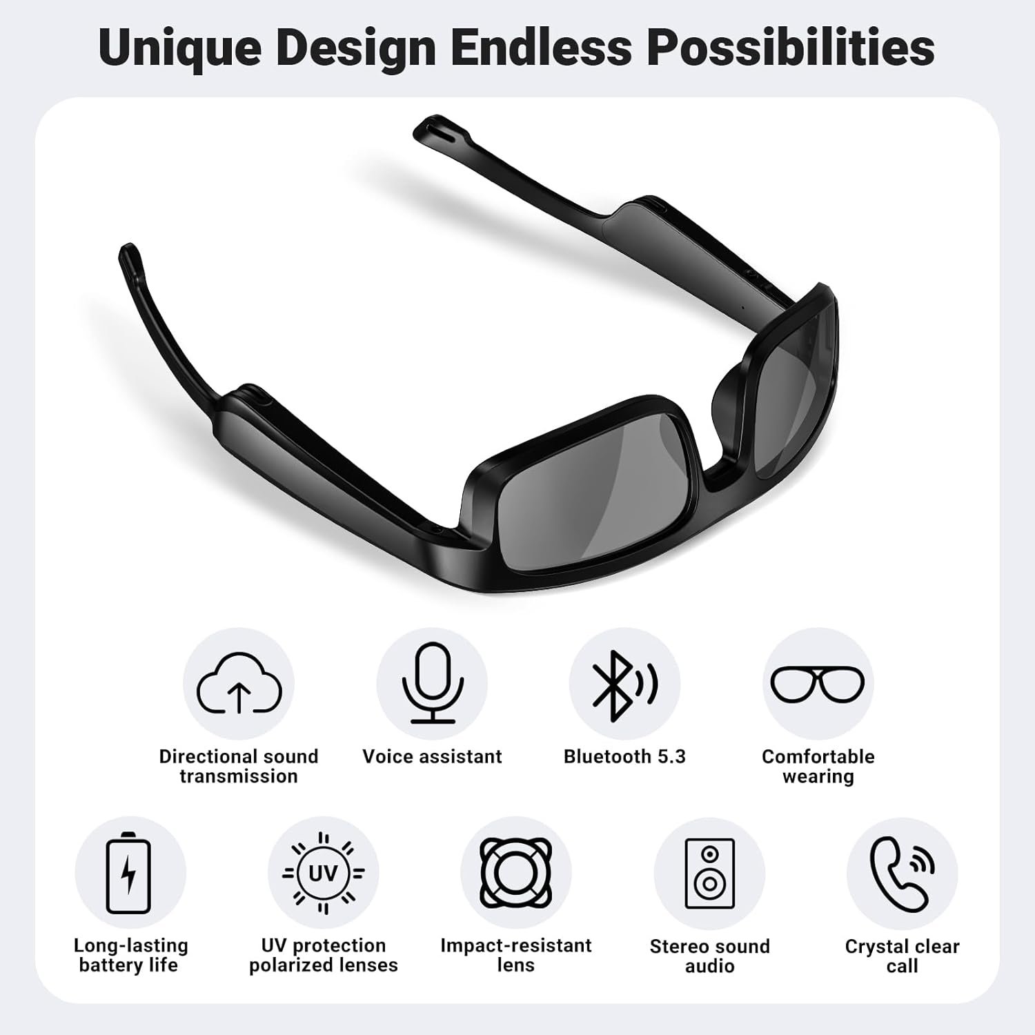 Smart Glasses, Polarized Bluetooth Sunglasses, Built-in Mic & Speakers, Voice Assistant, UV Protection Audio Sun Glass