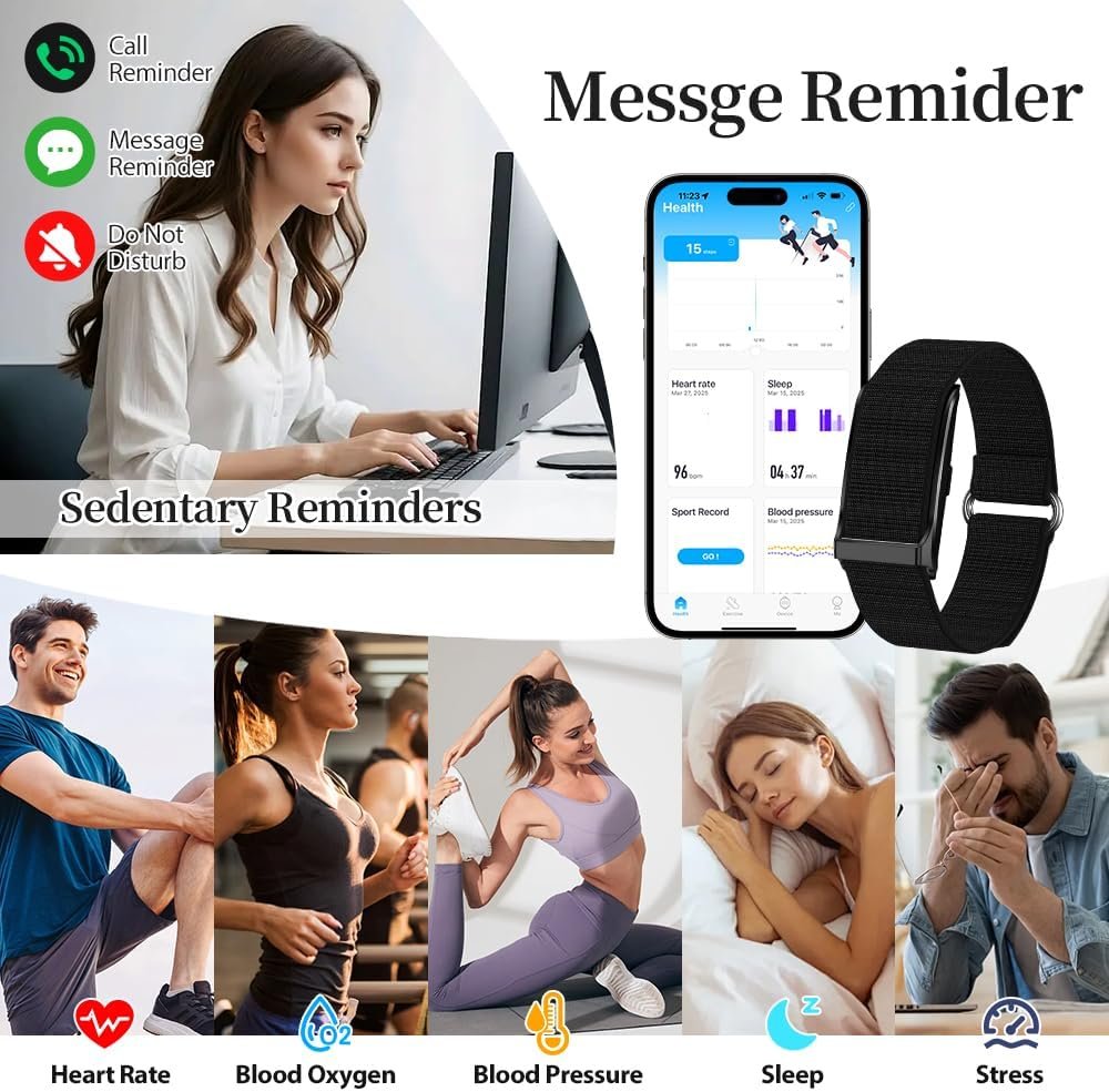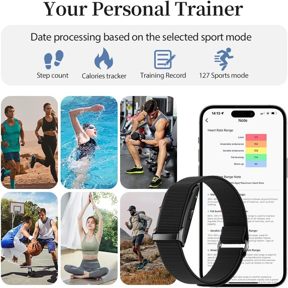 New Ultra-Lightweight Material: Our smart fitness tracker is crafted from lightweight materials and features a compact design, ensuring it fits perfectly on your wrist for maximum comfort. With just one click to connect to your phone, you can easily start managing your fitness and health. The screenless design is impact-resistant, ensuring durability and resistance to spotlight interference, making it a reliable companion for all your activities