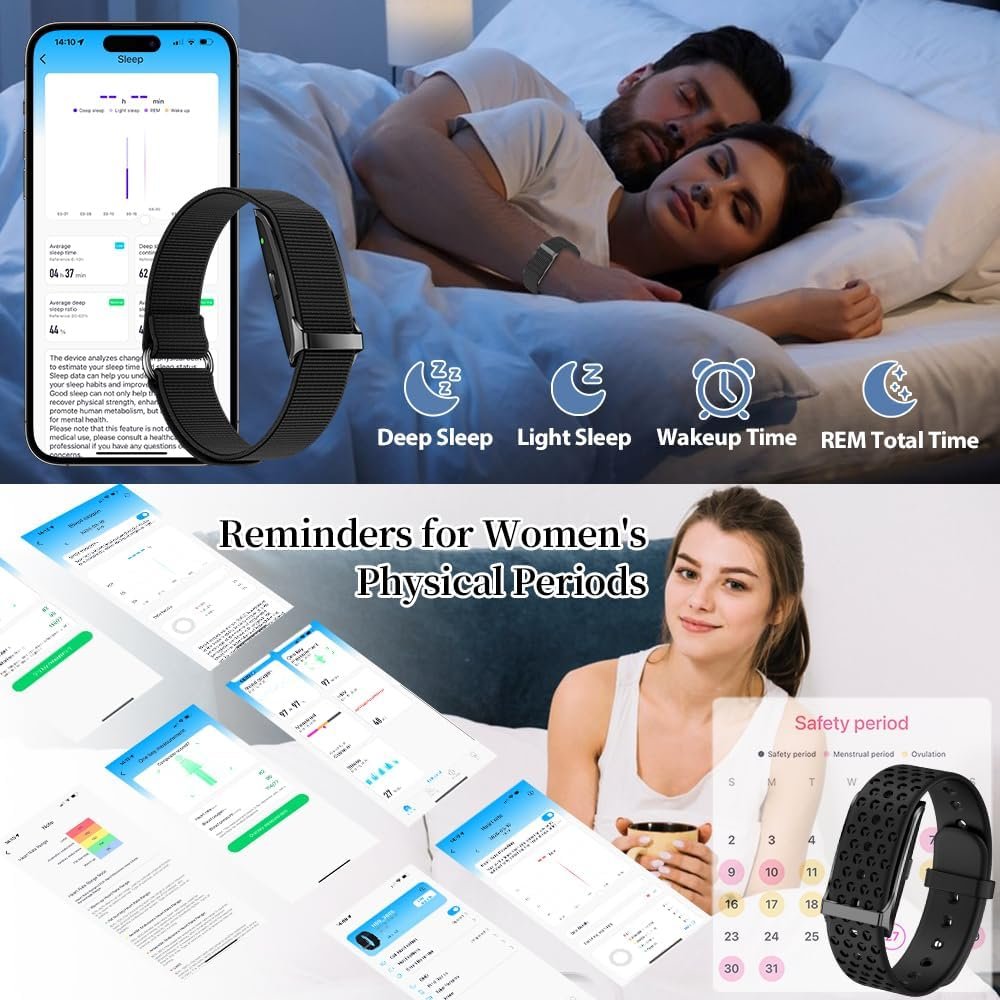 The Latest Design on the Market: This wristband is equipped with advanced sensors that continuously and accurately monitor heart rate, blood pressure, blood oxygen saturation (SpO₂), respiratory rate, stress levels, resting heart rate, heart rate variability, women’s menstrual cycle tracking, sleep quality, step counting, and daily activity tracking. It offers all the features you need, making it an ideal choice for fitness enthusiasts and outdoor adventurers