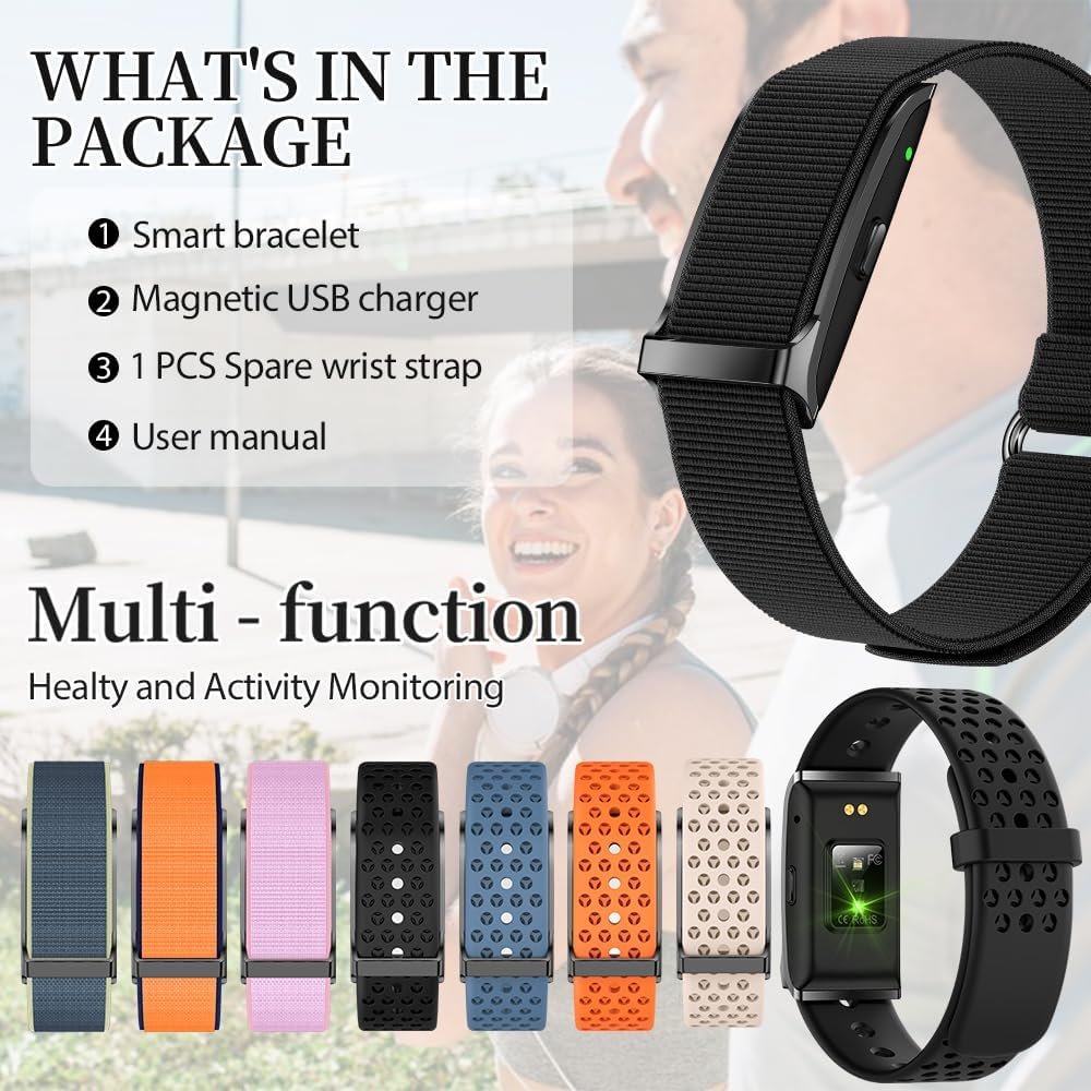 Two Straps & Lifetime Free App: This smart fitness tracker comes with two interchangeable straps (nylon + silicone) and a waterproof magnetic charger. It also includes a rare lifetime-free app (iOS/Android) tailored to your health management needs. Customize settings and track your progress through the app, making it easy to kickstart your fitness journey