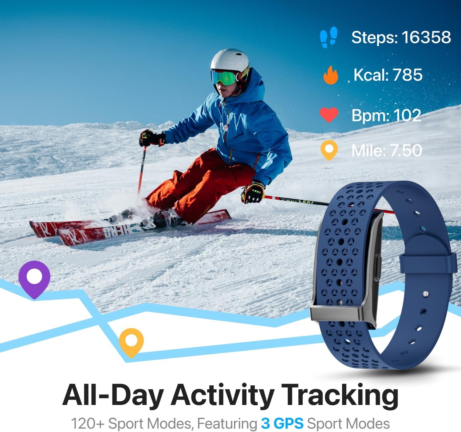 【120+ Sports Modes】This fitness tracker band supports more than 120+ sports modes, including rugby, football, baseball, basketball, golf, running, cycling, yoga, swimming and hiking.In this smart band addition, it also provides 3 GPS modes specifically for outdoor walking, outdoor running and cycling, helping you track your workout data accurately.
