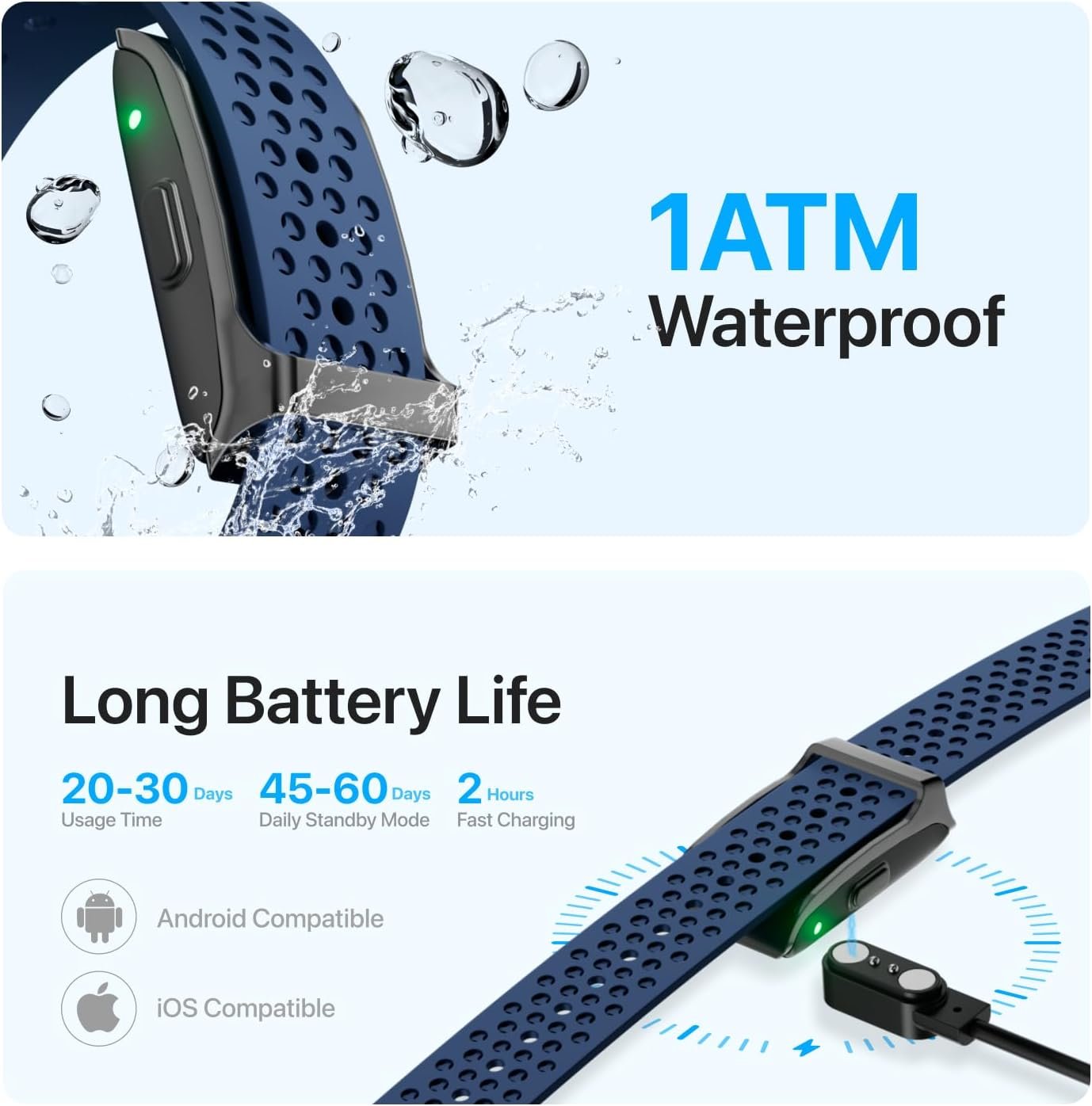 【1ATM Waterproof】This smart bracelet a 1ATM waterproof rating, which can withstand daily situations such as rain, sweat, and washing dishes. However, it is recommended to avoid using it in hot water or sea water to ensure optimal performance and lifespan.