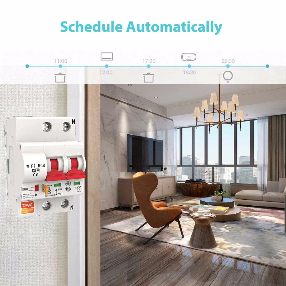 Smart Life WiFi Circuit Breaker 2P Automatic Switch Overload Short Circuit Protection Alexa Google Home Compatible
