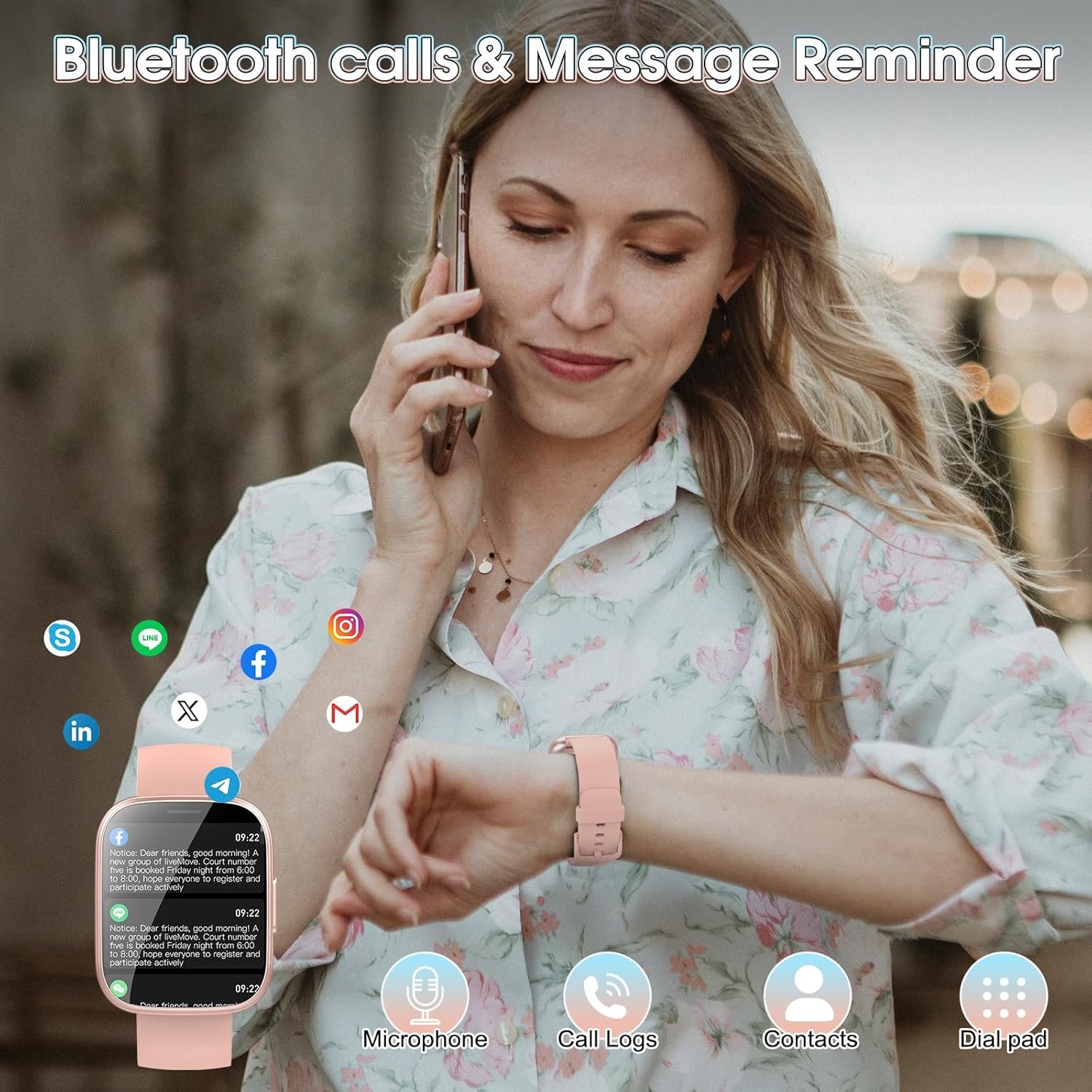 Stay Connected and Messaged: The smartwatch uses the advanced Bluetooth 5.4 chip, providing fast and stable connections to your phone. With its built-in microphone and Hi-Fi speaker, you can make and receive clear calls directly from the watch. It also supports notifications from popular apps like Facebook, WhatsApp, Instagram, and Twitter. All notifications are displayed on your wrist and accompanied by vibration alerts, ensuring you never miss important calls or messages.