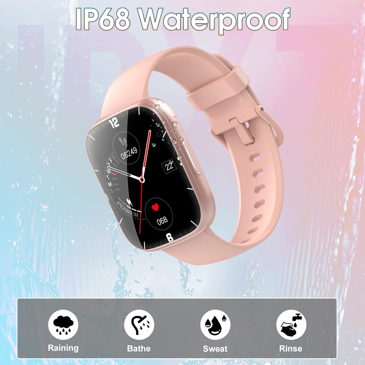 Smart Watch for Men Women, 1.95″ HD Touch Screen Fitness Watch with Sleep Heart Rate Monitor, 110+ Sports Modes, IP68 Waterproof Activity Trackers Compatible with Android iOS, Pink