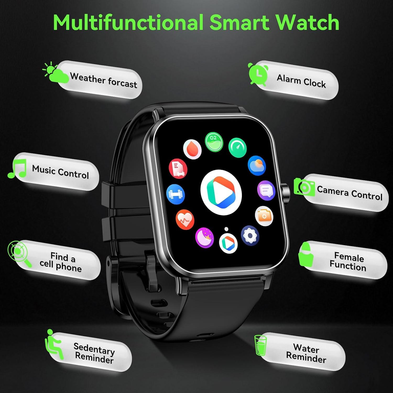 Bluetooth Call & Smart Reminder: Smart watch is equipped with an advanced 5.3 chip, allow you to make Bluetooth calls, sync contact information and store call history. Also can send vibrating alerts for messages and various social media notifications