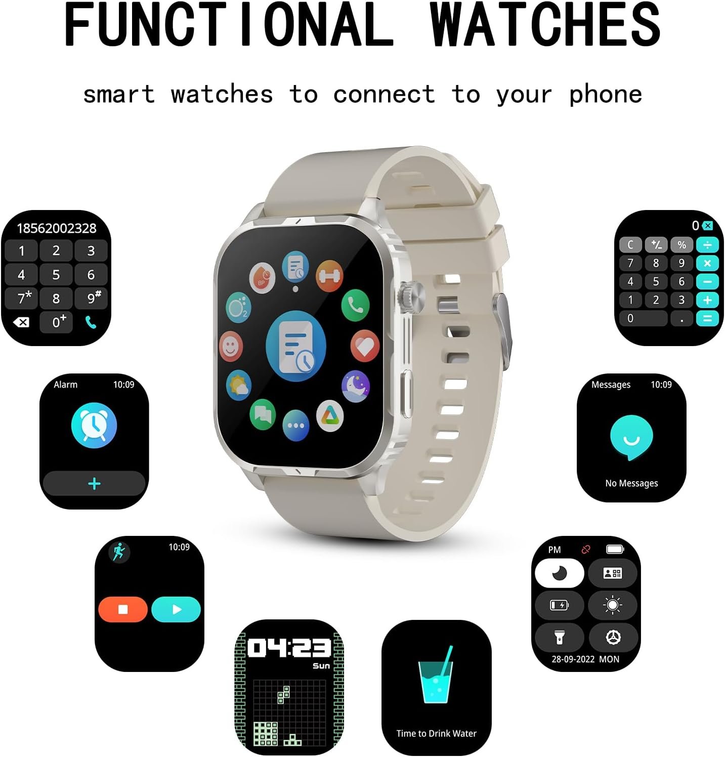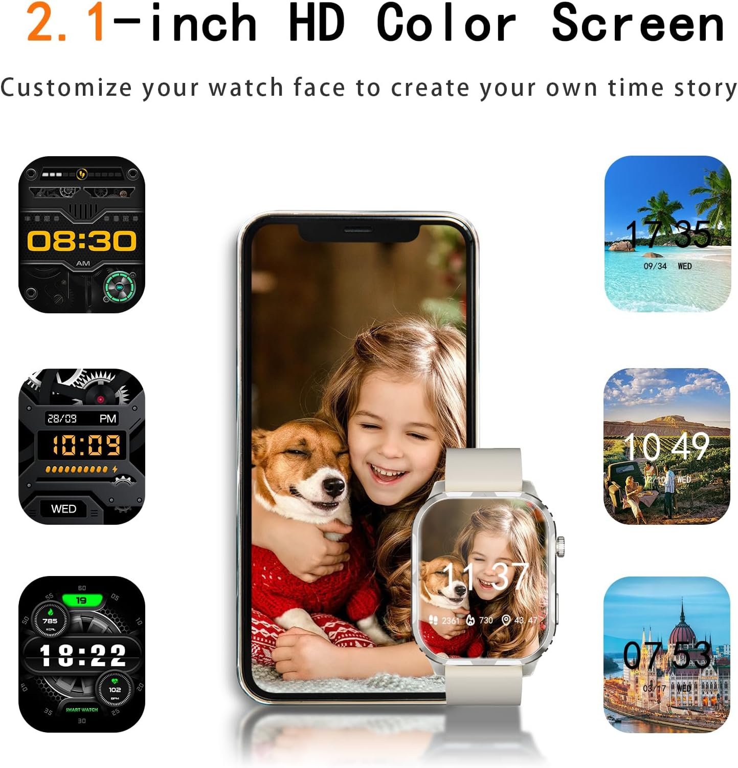 3-Android smart watch features a 2.01-inch HD color screen with 320*380 resolution for exceptional picture quality and touch response.smart watches to Connects to your phone via the Da Fit app, offering 100+ free personalized watch faces. Customize with favorite photos for a unique look