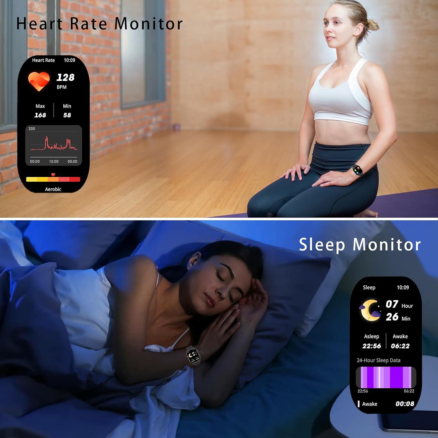 2-24-Hour Health Monitoring : Bluetooth Smart Watch with a high-performance optical sensor tracks your activities, including heart rate and steps. The fitness watch automatically monitors sleep stages and offers a weekly health report in the app for improved sleep habits and a healthier lifestyle