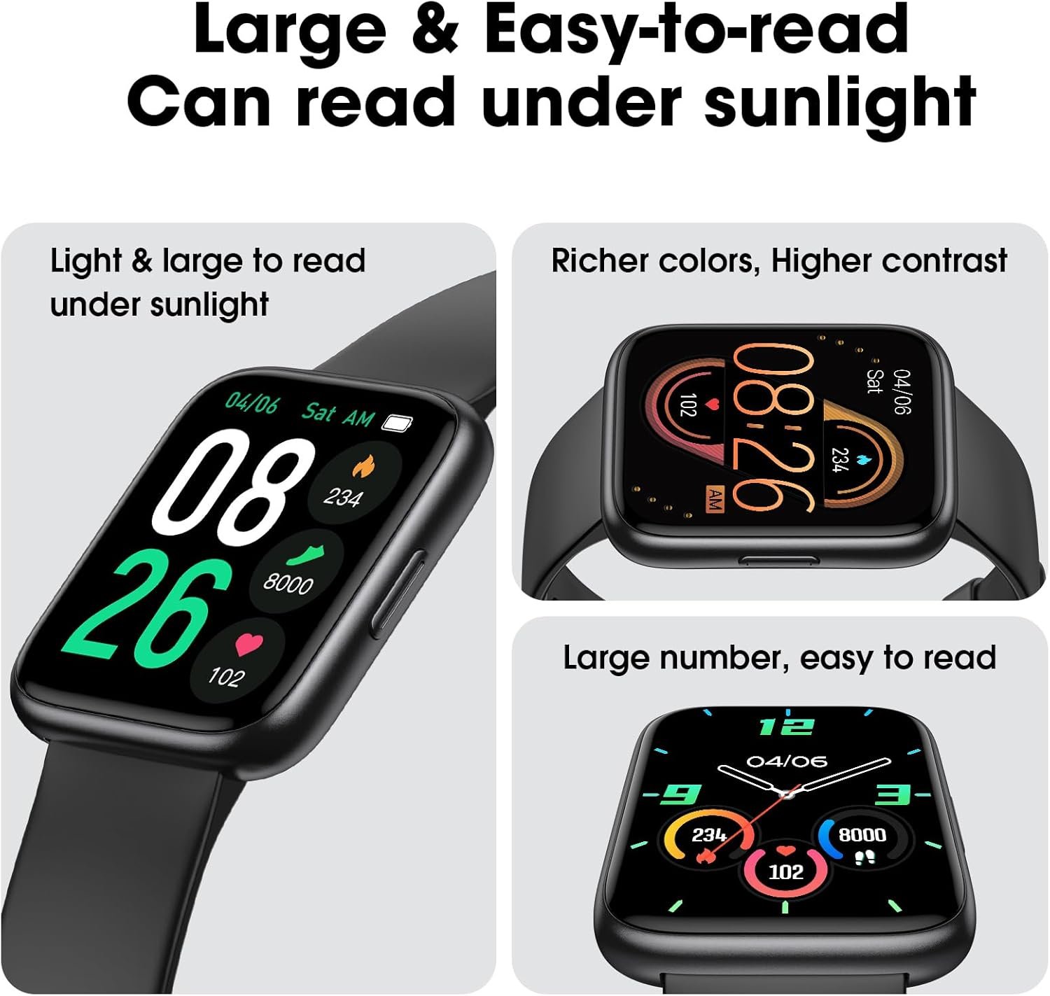 【Large, Easy-to-read Screen for User-Friendly Experience】Featuring an upgraded 1.8″ ultra-clear AMOLED HD display with a resolution of 368*448; Enjoy a wider viewing range, lower power consumption, richer colors, and higher contrast.