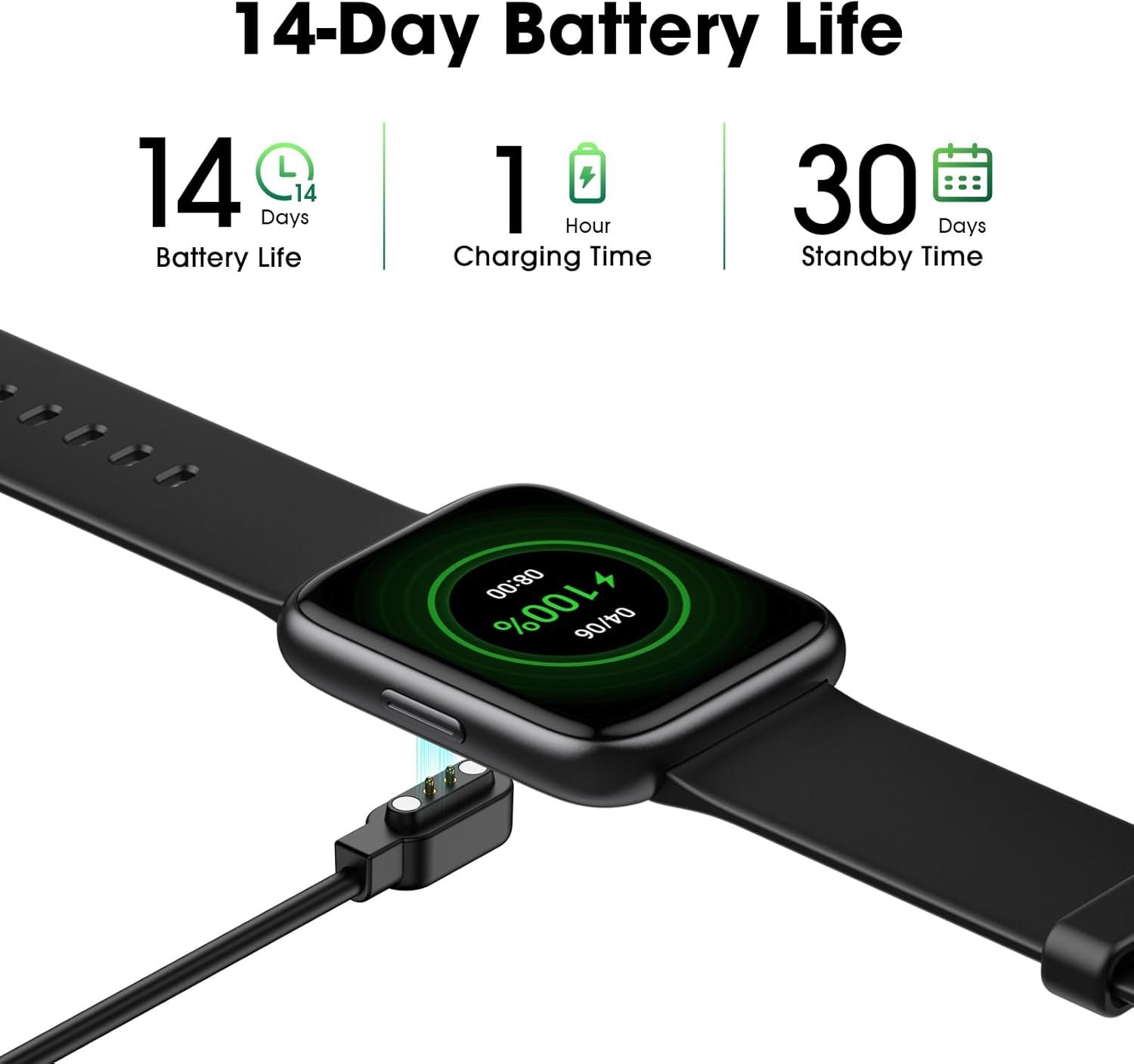 【14 Days Battery Life】With a high-capacity battery, this activity tracker lasts up to 14 days on a single charge and can stay in standby mode for up to 30 days; It takes only about 1.5 hours to fully charge; Perfect for business trips or travel.