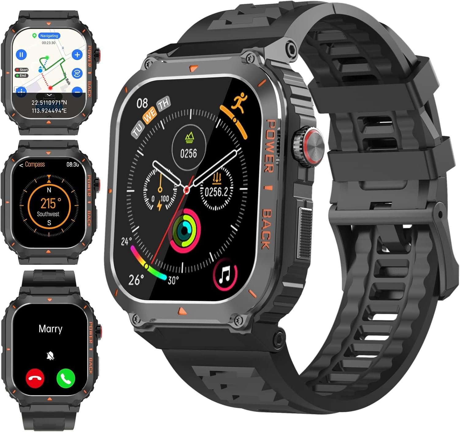 Smart Watches for Men,Military Smartwatches with GPS and Map Navigation & BT Calls – Fitness Trackers with Heart Rate/SpO2/Sleep Monitor,Elevation,Compass,Outdoor Sport Watch for Android/iOS