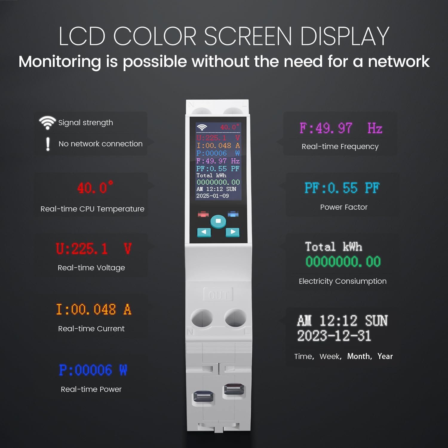 Smart Wifi Switch, 1P+N AC90-240V 1-50A, Smart Life/Tuya APP Remote Control, with Power Monitoring, Export/Clear Power Data, DIN Rail Mounted, with LCD Display, Recloser Function, FCC Certified